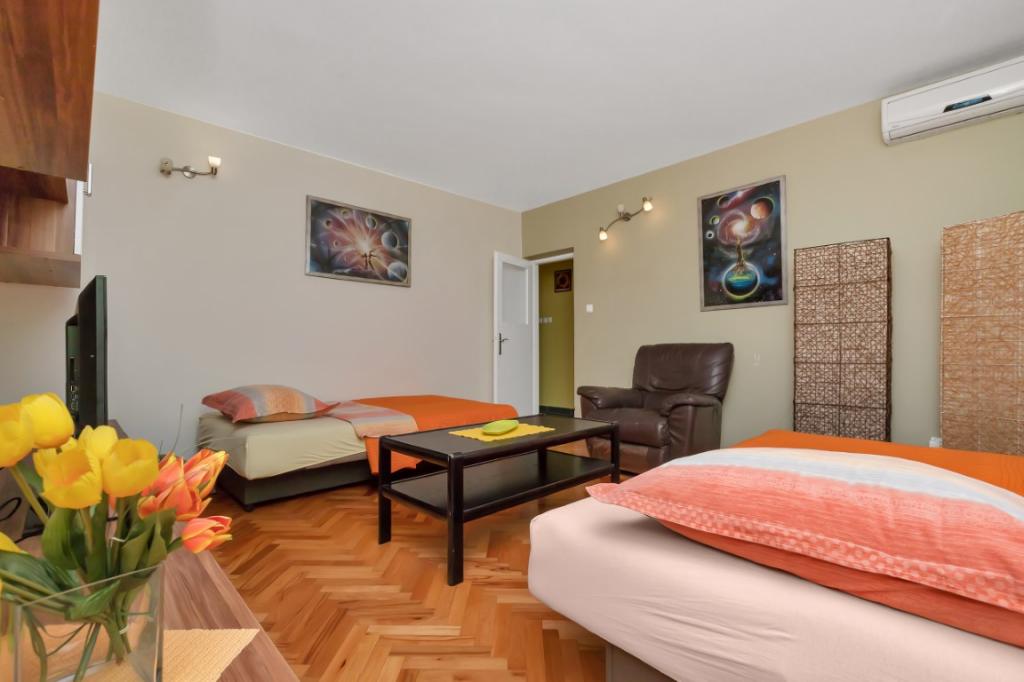 Apartament położony jest w centrum Makarskiej, na drugim piętrze, 4 min pieszo do centrum, 9 min spacerem do plaży, 2 min spacerem do morza, z dostępem do Internetu, TV, telewizja satelitarna, kuchenka mikrofalowa, lodówka, pralka, naczynia zmywarka, żelazko, parking ....