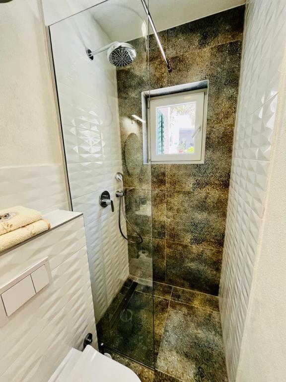 Apartament Danica znajduje się na pierwszym piętrze domu rodzinnego w zachodniej części miasta Makarska. Parking znajduje się na terenie domu rodzinnego. W bezpośrednim sąsiedztwie budynku znajduje się kawiarnia, apteka, supermarket i bankomat. Mieszkanie składa się z dwóch pokoi i dwóch toalet, przy czym jedna toaleta jest częścią jednego pokoju, a także kuchni i salonu.