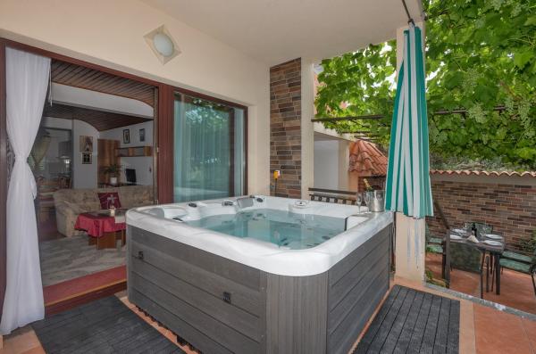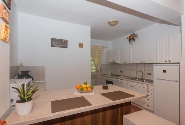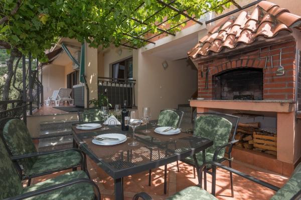 Apartament znajduje się w Veliki Brdo, 1, 5 km powyżej miasta Makarska. Mieszkanie ma powierzchnię 120 metrów kwadratowych z widokiem na morze. Mieszkanie składa się z salonu, jadalni, kuchni, magazynu, 3 sypialni i 3 łazienek. Na balkonie znajduje się jacuzzi, a na tarasie znajduje się grill i część wypoczynkowa. Parking dla dwóch samochodów jest wliczony w cenę. W garażu znajduje się tenis stołowy, rzutki i worek z 2 parami rękawiczek. Mieszkanie ma Wi-Fi. W jadalni znajduje się komputer, z którego można korzystać.