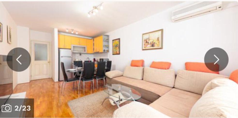 Dwupokojowy, nowocześnie urządzony apartament na parterze w budynku z przestronnym tarasem. Bezpłatny parking przed budynkiem. Apartament znajduje się w pobliżu sklepów Lidl i Kaufland. W 10 minut spacerem można dotrzeć do plaży Osejava i centrum miasta.