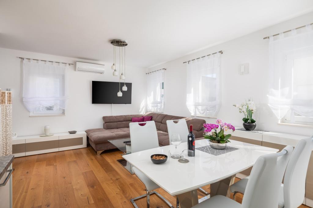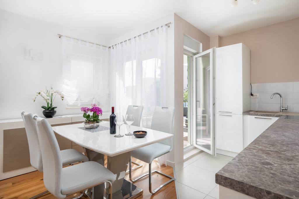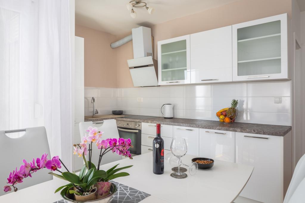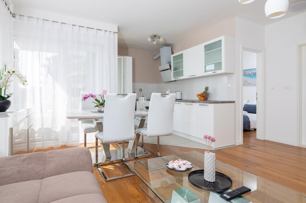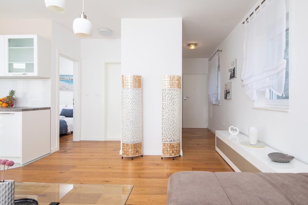 Apartament Lana położony jest 800m od plaży i morza, do centrum również 800m. Apartament ten zapewnia wypoczynek i relaks właśnie dlatego, że znajduje się z dala od hałasu i tłoku. Składa się z 1 sypialni, nowoczesnej kuchni, balkonu z częściowym widokiem na morze. W salonie znajduje się rozkładana sofa, na której mogą spać 2 osoby. Łazienka jest nowocześnie wyposażona w kabinę prysznicową i pralkę. Ciesz się apartamentem Lana i rezerwuj już teraz!