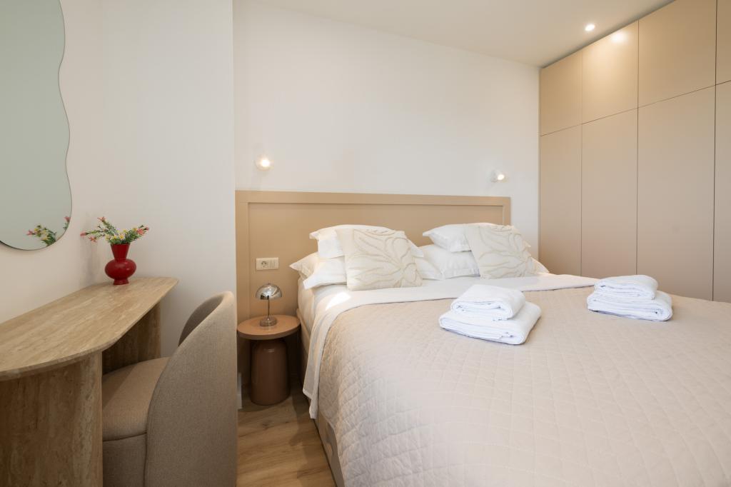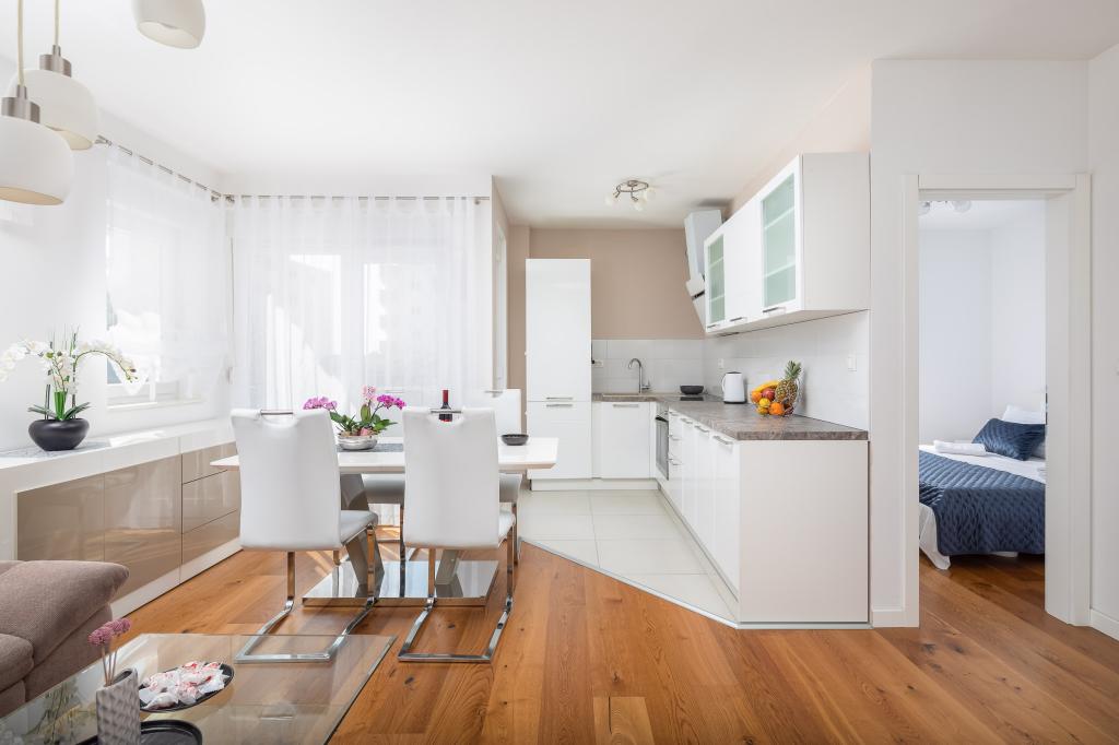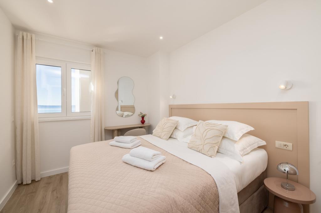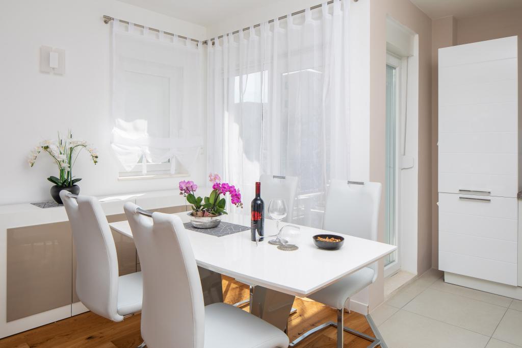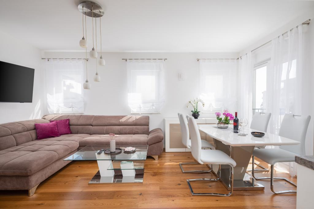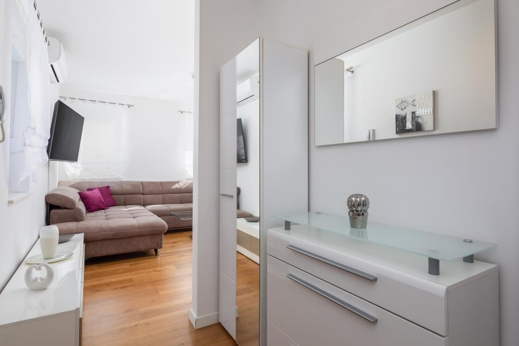 Apartament Lana położony jest 800m od plaży i morza, do centrum również 800m. Apartament ten zapewnia wypoczynek i relaks właśnie dlatego, że znajduje się z dala od hałasu i tłoku. Składa się z 1 sypialni, nowoczesnej kuchni, balkonu z częściowym widokiem na morze. W salonie znajduje się rozkładana sofa, na której mogą spać 2 osoby. Łazienka jest nowocześnie wyposażona w kabinę prysznicową i pralkę. Ciesz się apartamentem Lana i rezerwuj już teraz!