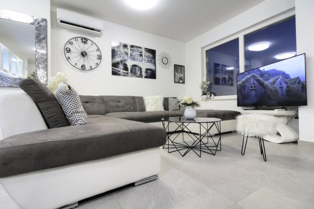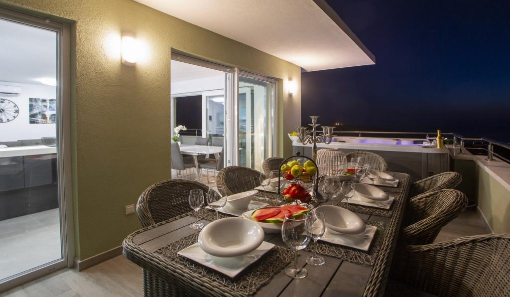 Luksusowy penthouse z prywatnym jacuzzi / widokiem na morze, miasto i wyspę Zupełnie nowy, klimatyzowany penthouse o powierzchni 125 m2 zawiera 3 sypialnie, każdy pokój posiada balkon, dwie łazienki z pralką, prywatne duże jacuzzi (5 1) na tarasie z widokiem na morze, telewizor z płaskim ekranem 55, telewizor 4K SMART, jadalnia z kuchnią z pralką i pełnym wyposażeniem kuchennym, dostępem do dużego tarasu, z meblami ogrodowymi i jacuzzi. Na miejscu dostępny jest bezpłatny parking Apartament jest idealny na rodzinne wakacje w Makarskiej, grupy na wakacje z przyjaciółmi, a także na aktywne wakacje na Riwierze Makarskiej. Makarska jest jednym z najbardziej znanych ośrodków turystycznych w Dalmacji (turystyka zorganizowana rozwija się od lat 60.) i jednym z najbardziej malowniczych miasteczek na Adriatyku, z wieloma charakterystycznymi wąskimi uliczkami na starym mieście. Słynie również z kilometrowych kamienistych plaż i bliskiego sąsiedztwa Parku Przyrody Biokovo, który oferuje piesze wycieczki, różne wycieczki i zajęcia z pięknymi panoramicznymi widokami na miasto, wyspy, Włochy ... Jeśli masz dodatkowe pytania, skontaktuj się z nami. Życzymy ciepłego powitania i miłego pobytu w naszym apartamencie