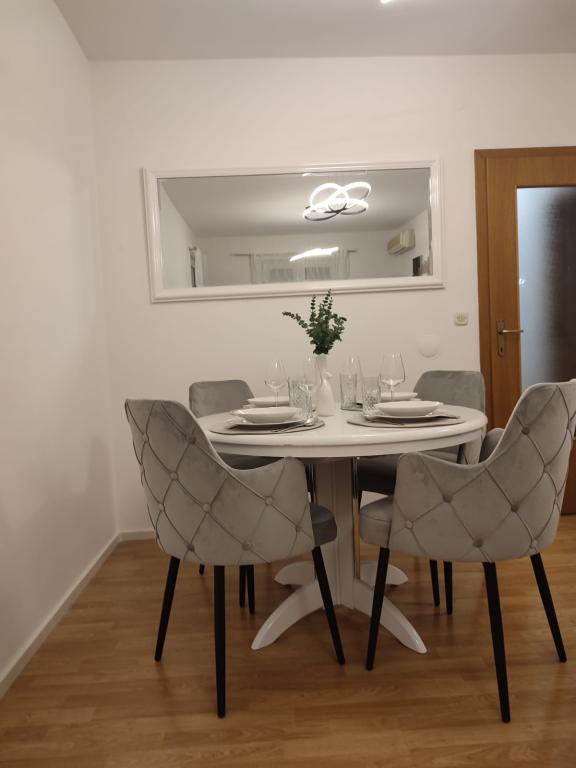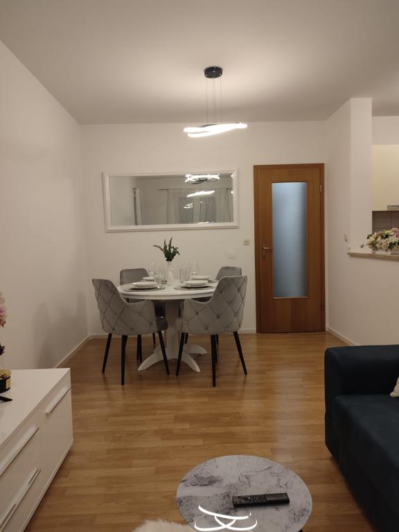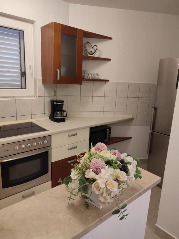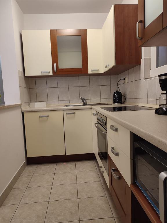 W pełni i nowocześnie wyposażony apartament w Makarskiej, na pierwszym piętrze budynku mieszkalnego, 100 metrów od morza i pięć minut spacerem przez las sosnowy do słynnej plaży Biloševac...