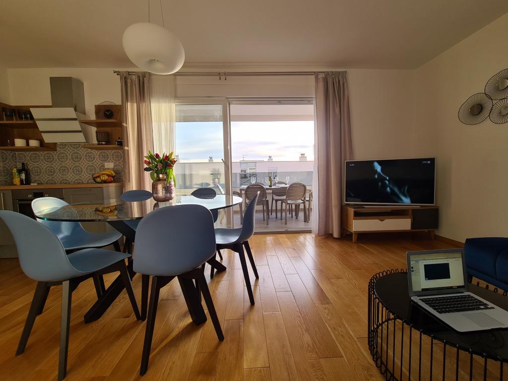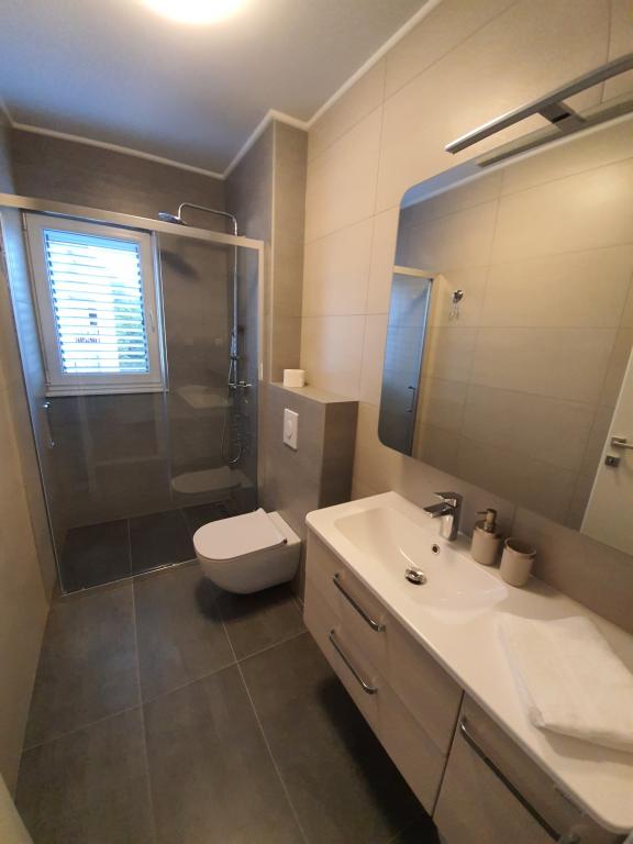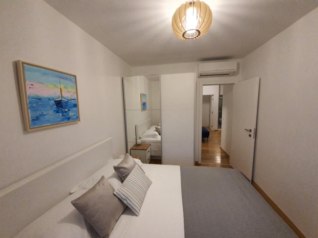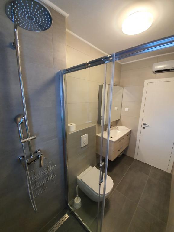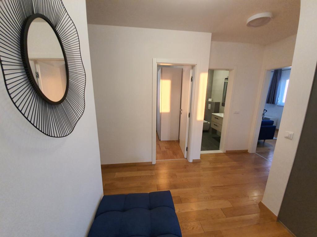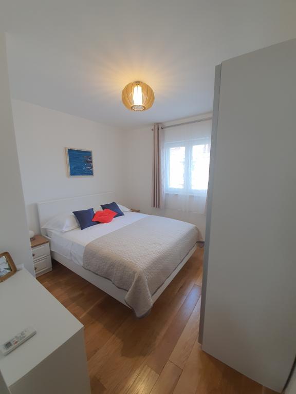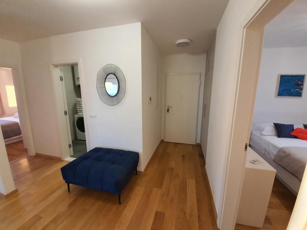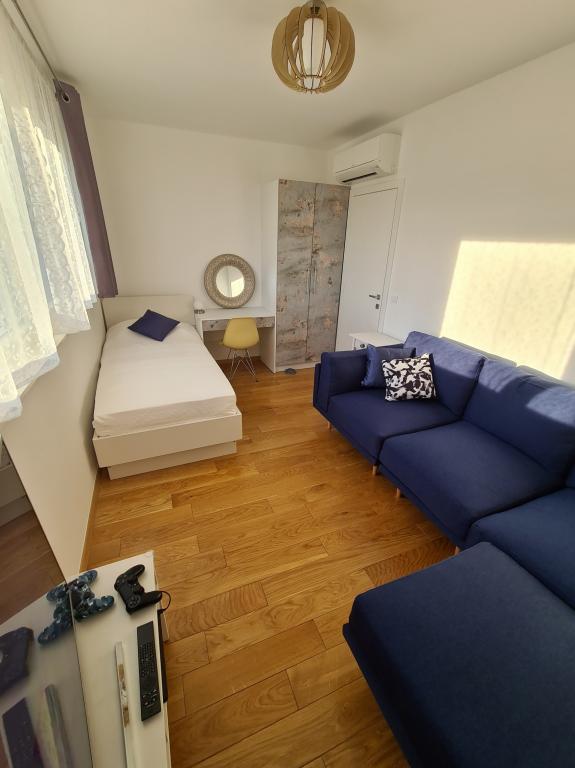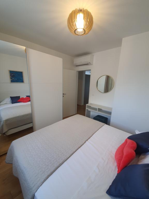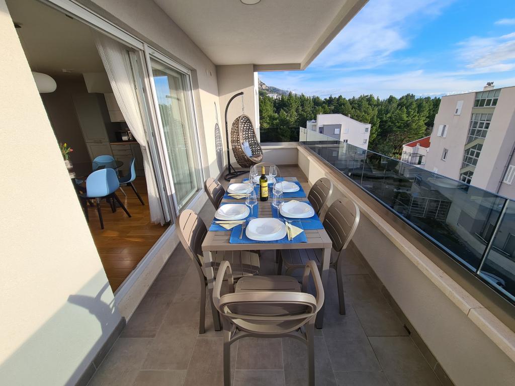 Na 4 (najwyższym) piętrze nowo wybudowanego budynku z windą w cichej rodzinnej okolicy znajduje się od strony południowej nowo wyremontowane mieszkanie o powierzchni 83 m2 z dużym salonem i w pełni wyposażoną kuchnią (lodówka, zamrażarka, mikrofalówka, zmywarka, piekarnik) , kuchenka), 3 sypialnie z czego 2 są z podwójnym łóżkiem (160x200) a trzecia jest z pojedynczym łóżkiem (90x200) i kanapą mogącą służyć jako dodatkowe łóżko, a jest jeszcze TV i PlayStation 4, bo ten pokój jest zaprojektowany jako dodatkowy salon. Każdy pokój posiada klimatyzację (łącznie 4). W mieszkaniu są 2 łazienki z prysznicami, pralka / suszarka, żelazko, suszarka do włosów, sejf. Satyna bawełniana pościel i ręczniki. Na przestronnym balkonie o powierzchni 13m2 znajduje się dodatkowy stół dla 6 osób oraz wiszący fotel, aby cieszyć się widokiem na morze i wyspy Brac i Hvar. Do dyspozycji 2 miejsca parkingowe: 1 przed budynkiem i 1 w garażu budynku. Wszystko w mieszkaniu jest nowe, wysokiej jakości i starannie dobrane dla maksymalnego komfortu naszych gości.
