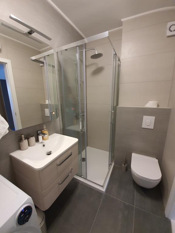 Absolutnie polecam. Mieszkanie jest dobrze wyposażone, czyste i zadbane, nowoczesne, klimatyzacja w każdym pokoju, wszystko identyczne jak na zdjęciach. Właścicielka jest niezwykle miła i sympatyczna, widzieli ją i słyszeli tylko raz, kiedy przyszła zmienić pościel. Widok z balkonu jest piękny. 2 miejsca parkingowe, sklep kilka metrów dalej. Na pewno wrócę jeszcze kilka razy.