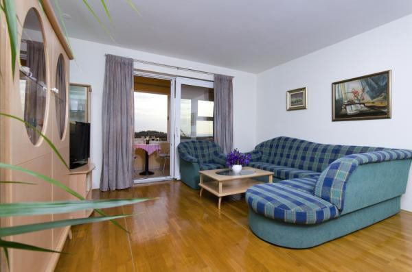 Komfortowy apartament w centrum Makarskiej. 3 minuty od nabrzeża (centrum miasta) i 5 minut od plaży. Zawiera on dwie sypialnie z podwójnymi łóżkami w salonie jest kanapa dla dwóch osób. Mieszkanie jest dobrze wyposażone; klimatyzacja, telewizja satelitarna, darmowe wi-fi, zmywarka, pralka, kuchenka mikrofalowa, czajnik elektryczny ... Przy budynku znajduje się bezpłatny parking.