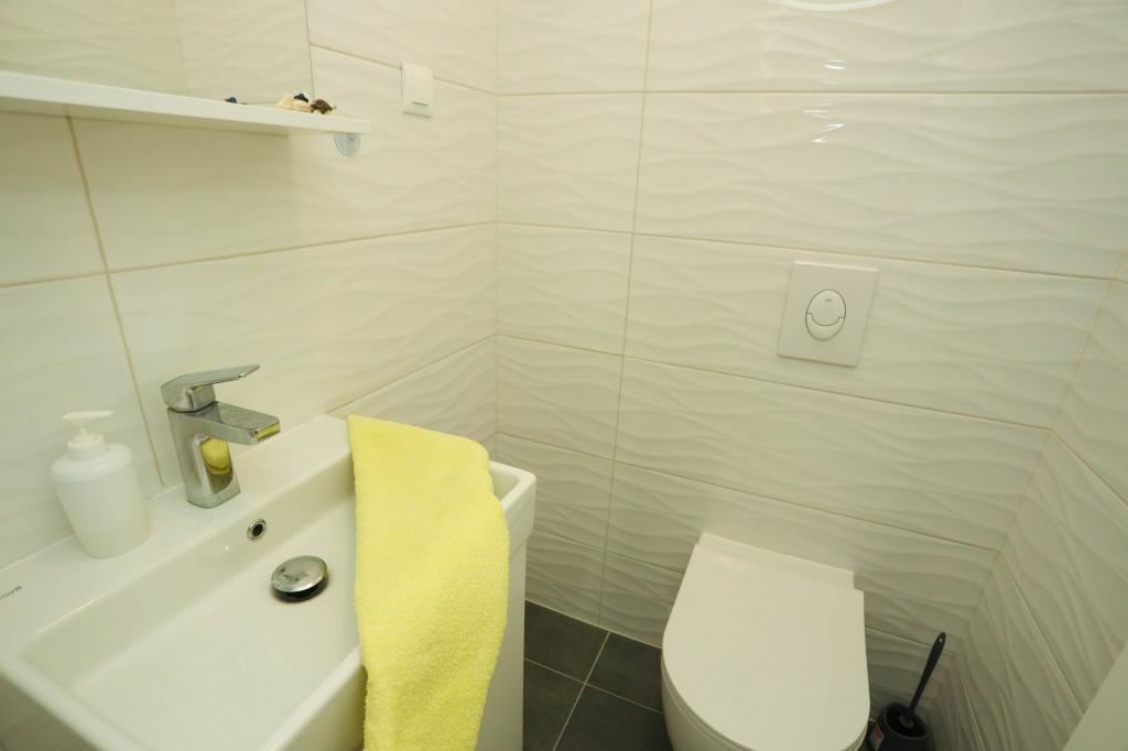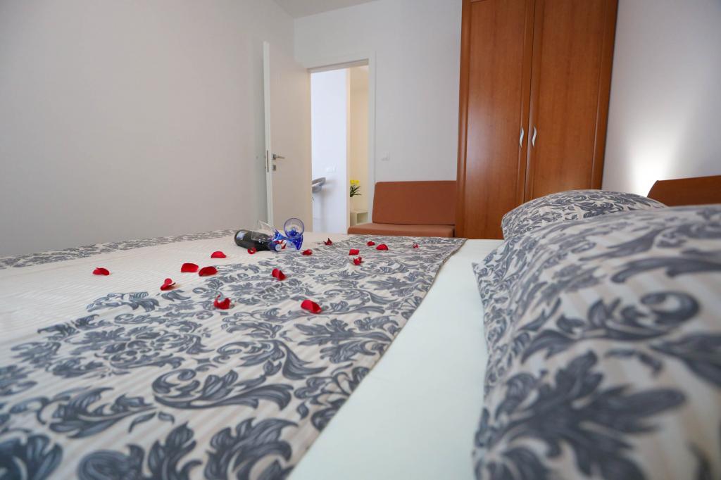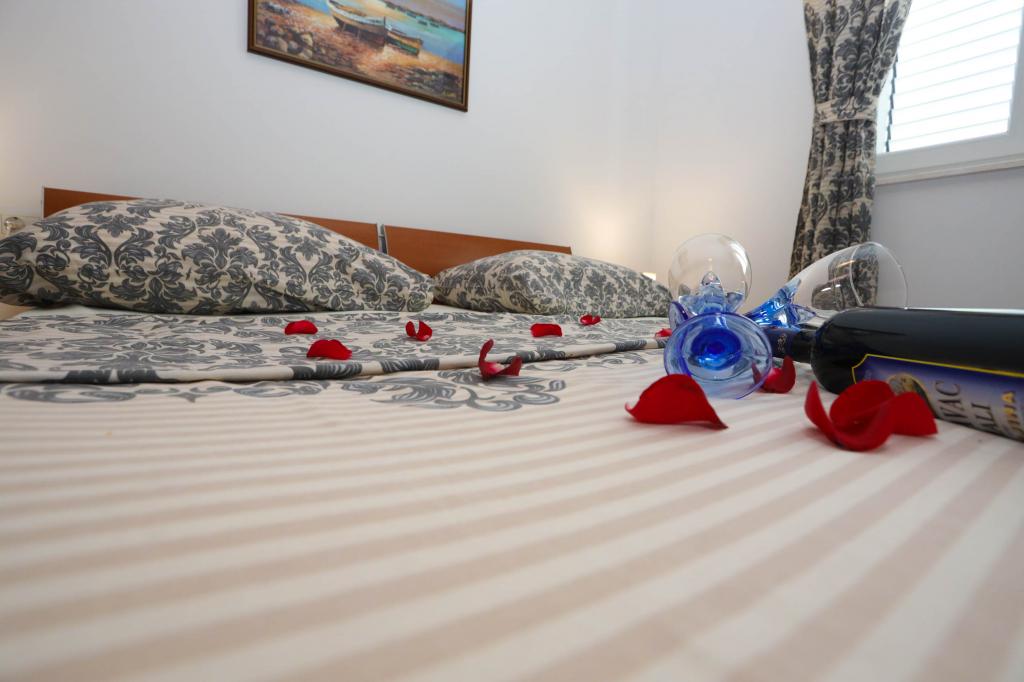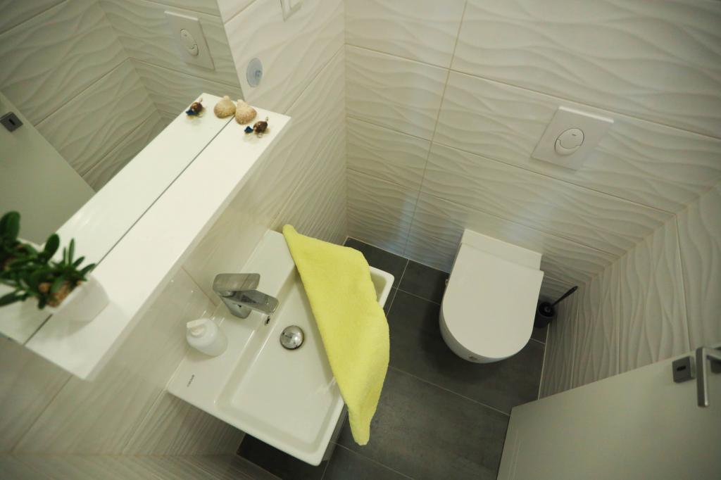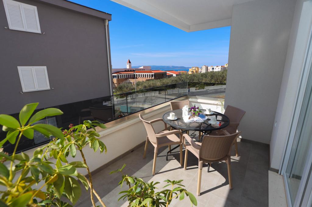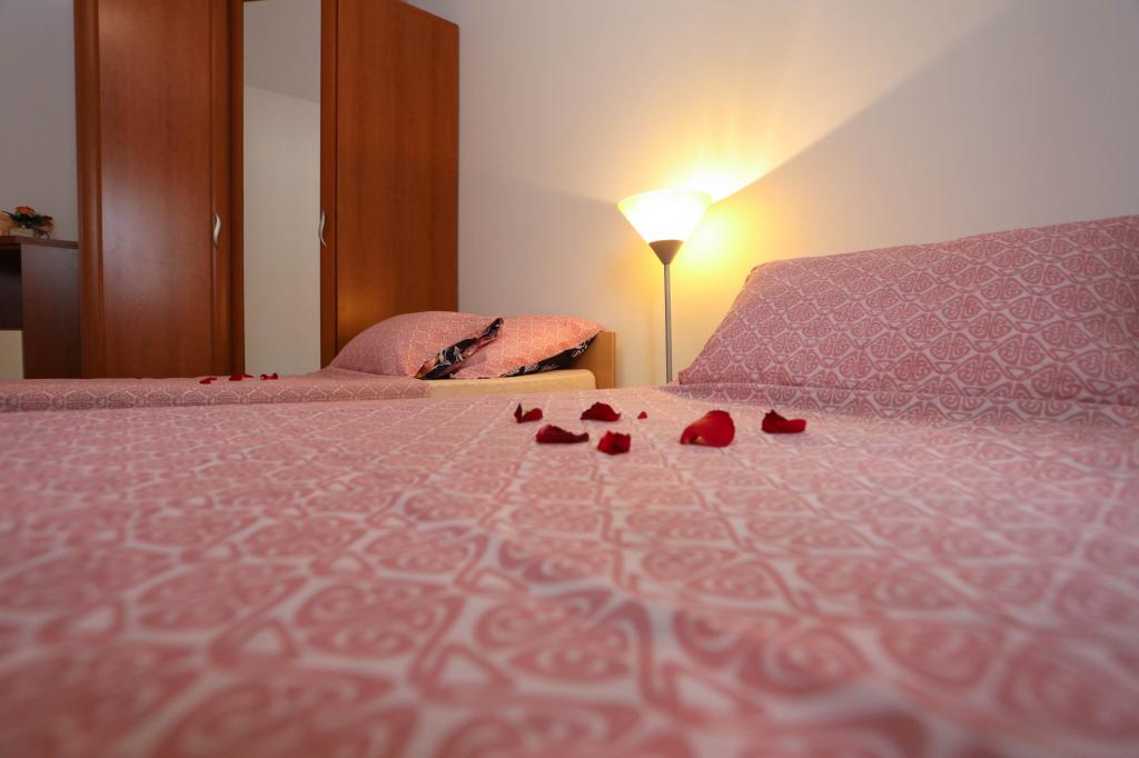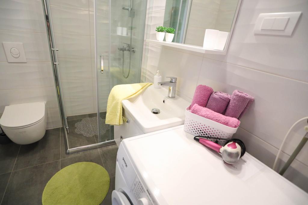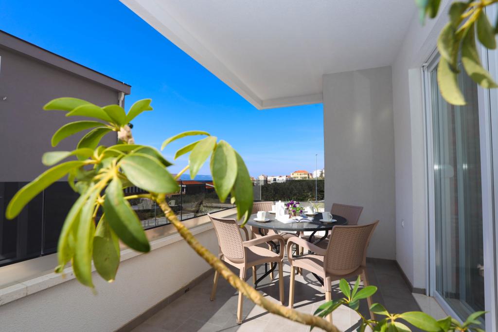 Nowocześnie wyposażony apartament na pierwszym piętrze nowego budynku mieszkalnego z windą. Apartament posiada wszystko, czego potrzeba do przyjemnego pobytu na wakacjach. Apartament Petra składa się z jadalni z wyposażoną kuchnią, salonu z rozkładaną sofą, która służy jako dodatkowe łóżko, łazienki i małej toalety oraz dwóch sypialni. W jednym pokoju znajduje się łóżko małżeńskie, a w drugim dwa łóżka, które w razie potrzeby można rozdzielić. Nieruchomość znajduje się 5 minut spacerem od centrum lub najbliższej plaży. W pobliżu znajduje się sklep i boisko sportowe do rekreacji.
