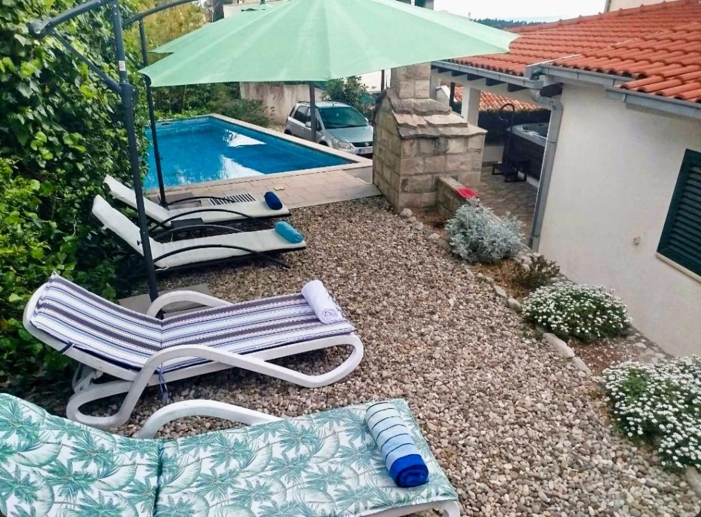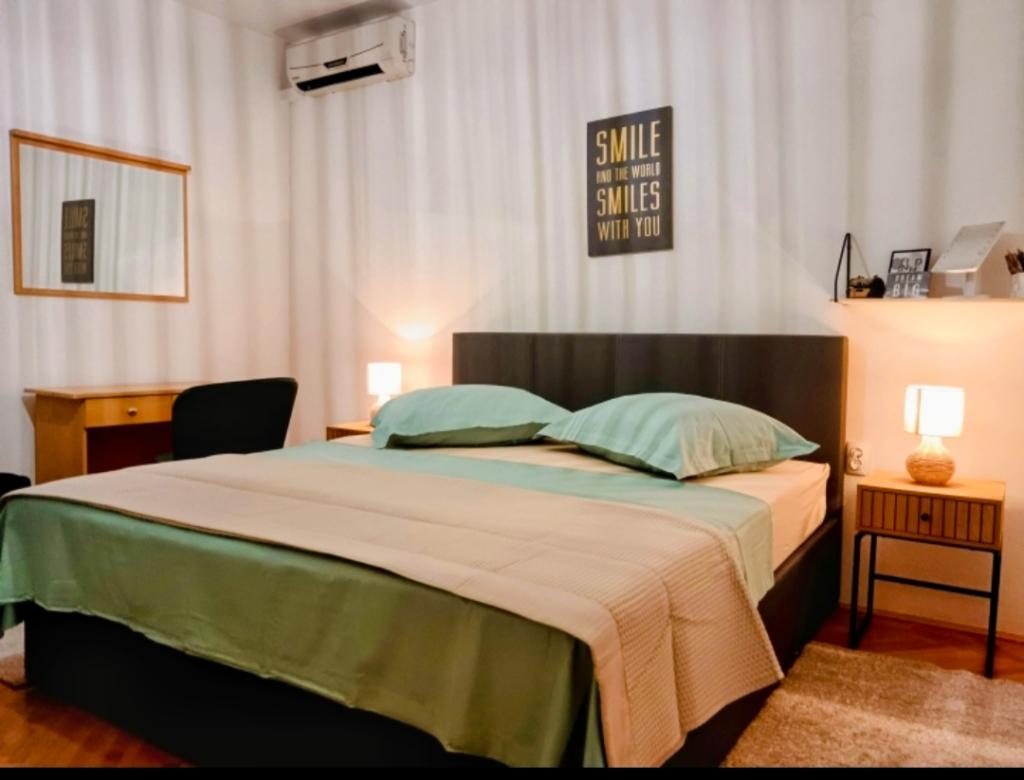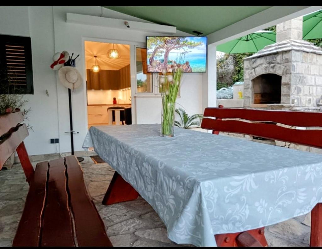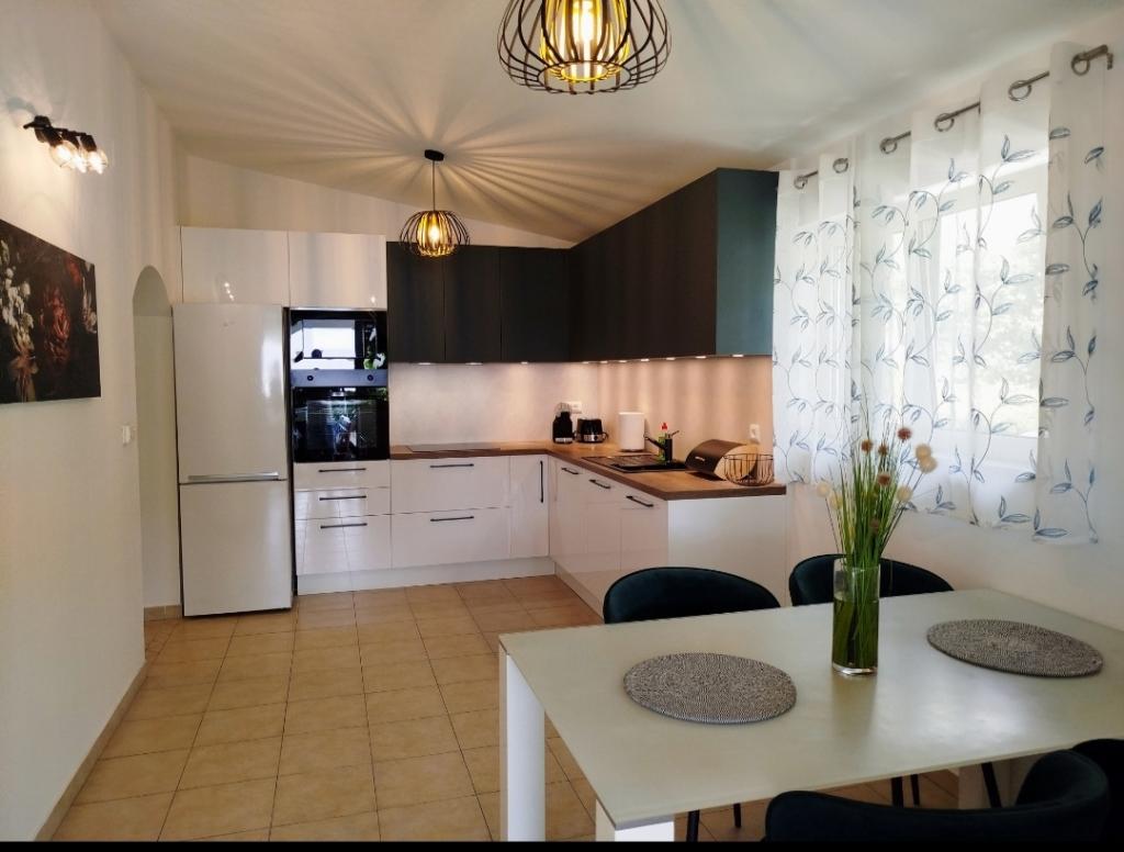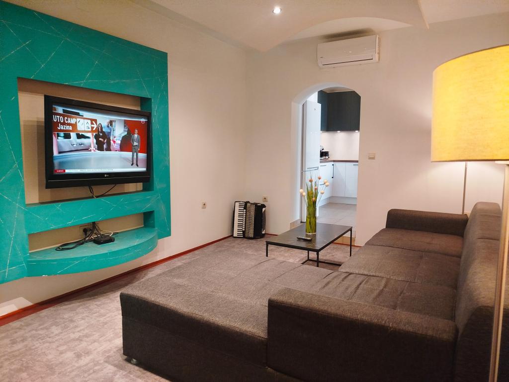 Apartament Robert położony jest w górzystej części miasta Makarska, zaledwie 500 m (5 min. spacerem) od centrum miasta i wszystkich najważniejszych letnich wydarzeń oraz 800 m od głównej plaży. Dom otoczony jest drzewami oliwnymi i posiada ogród z parkingiem. Dom wybudowano w lipcu 2014 roku i spełni wysokie wymagania gości. Składa się z dwóch sypialni, dwóch łazienek, w pełni wyposażonej kuchni, salonu z TV/SAT i wi-fi. Wszystkie pomieszczenia w domu są klimatyzowane. Przed domem znajduje się prywatny basen o powierzchni 28 m2 z prysznicem, leżakami i drewnianym stołem z ławkami.
