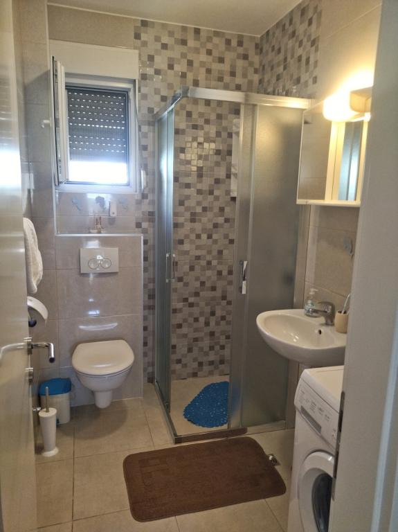 Apartament A2 to nowoczesny i przestronny apartament, doskonały wybór dla osób podróżujących we dwoje. Zawiera dwuosobową sypialnię z przenośnym wentylatorem i moskitierą w oknie oraz żelazkiem i deską do prasowania, salon z klimatyzacją i biurkiem z komputerem (komputer jest podłączony do telewizora za pomocą kabla HDMI2), jadalnia, duża i dobrze wyposażona kuchnia (lodówka z zamrażarką, zmywarka, kuchenka z piekarnikiem, czajnik), łazienka z prysznicem i moskitierą na oknie, pralka i suszarka do włosów, duży balkon, bezpłatne Wi-Fi oraz bezpłatny parking na terenie budynku.