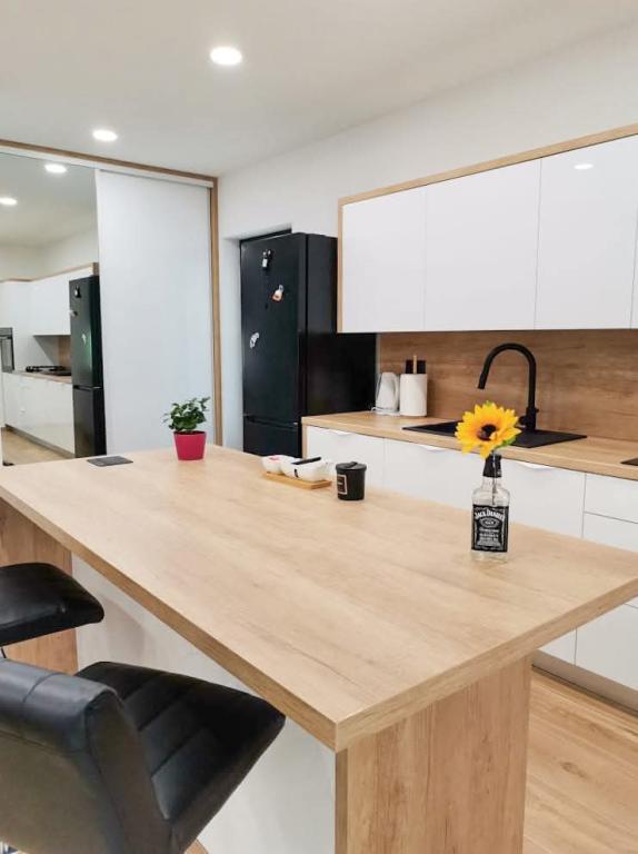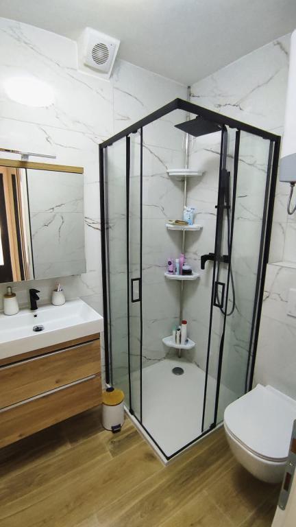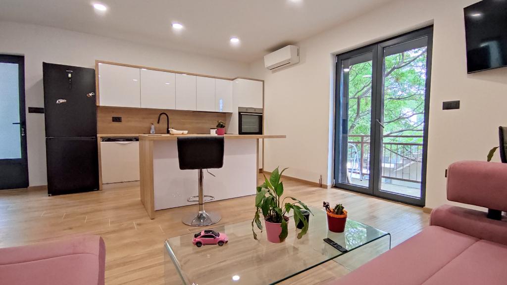Nowy, nowoczesny i w pełni wyposażony apartament typu studio dla 2 osób znajduje się w domu rodzinnym z osobnym wejściem. Położony jest w cichej okolicy, z dala od miejskiego zgiełku, a jednocześnie zaledwie 5 minut spacerem od plaży Osejava i centrum Makarskiej. W bezpośrednim sąsiedztwie znajduje się centrum handlowe, miejski ośrodek sportowy, szpital i targ. Apartament oferuje wszystko, czego potrzeba do komfortowego pobytu; nowoczesne wyposażenie obejmuje Wi-Fi, telewizor Smart TV z Netflixem, klimatyzację, w pełni wyposażoną kuchnię i łazienkę. Bezpłatne miejsce parkingowe znajduje się tuż przed wejściem. Idealny dla osób ceniących spokój i prywatność, a jednocześnie bliskość wszystkich udogodnień Makarskiej.