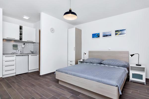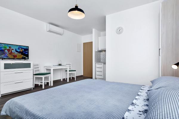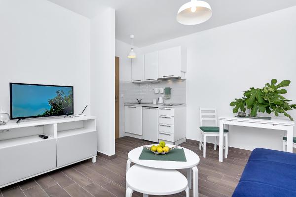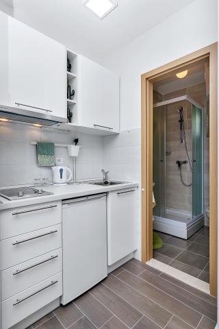 Nowo wyremontowane iw pełni wyposażone apartamenty w centrum miasta. Znajdują się one przy cichej ulicy, zaledwie kilka minut od nabrzeża i wszystkich udogodnień. Blisko dworca autobusowego. Tylko 10 minut od najbliższej plaży. Zapewniony bezpłatny parking przed domem.