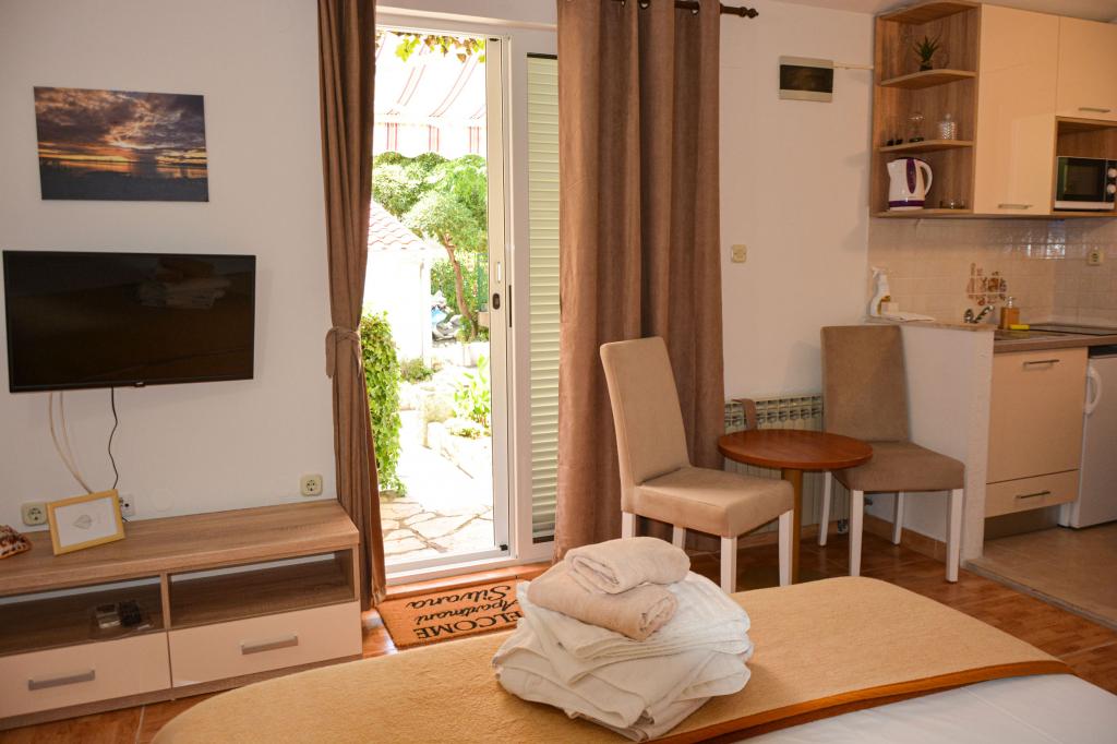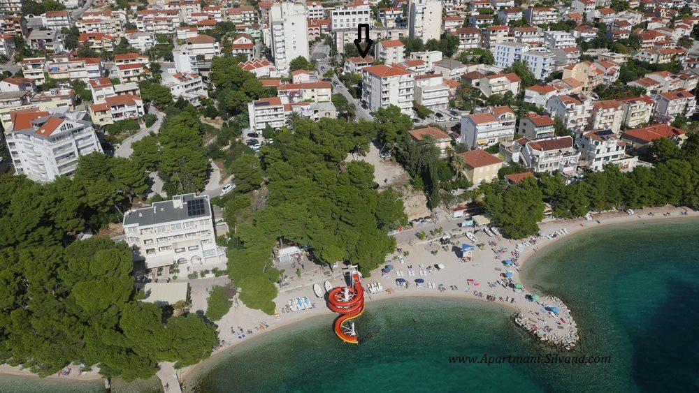 Apartamenty "Silvana" (cztery apartamenty i studio) znajdują się w centrum Makarskiej, zaledwie 80 metrów od miejskiej piaszczystej plaży, do której dostęp jest bezpłatny. Wszystkie nasze apartamenty wyposażone są w kuchnię, jadalnię, internet WiFi, telewizję satelitarną oraz balkon czyli taras, ogródek pod koronami dalmatyńskich drzew i pachnący śródziemnomorskimi ziołami. Wszystkie apartamenty wyposażone są w centralne ogrzewanie i klimatyzację. Nadają się również do turystyki zimowej. Woda w domu we wszystkich kranach jest zdatna do picia. Wszystkie apartamenty posiadają prywatny parking. App 4+2, 2 x App 2+2, App 4+ 1 i Studio zostały całkowicie odnowione i wyposażone w nowy sprzęt.