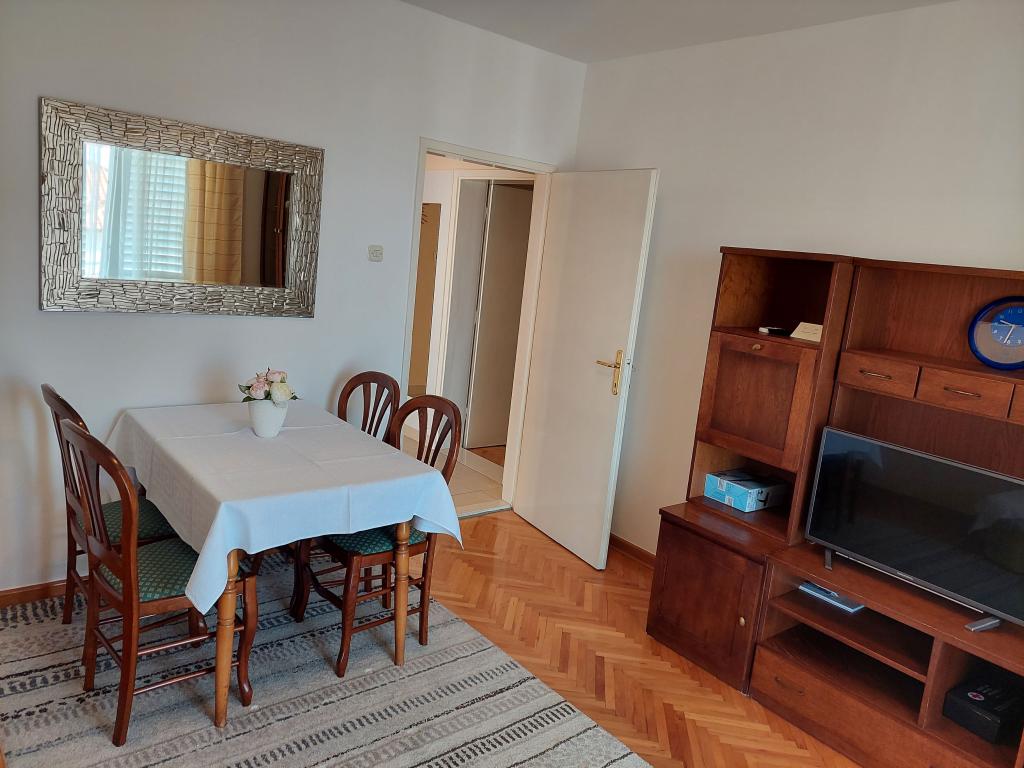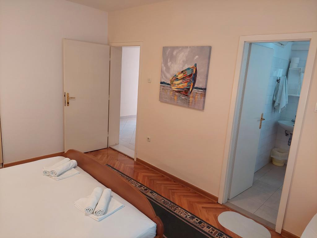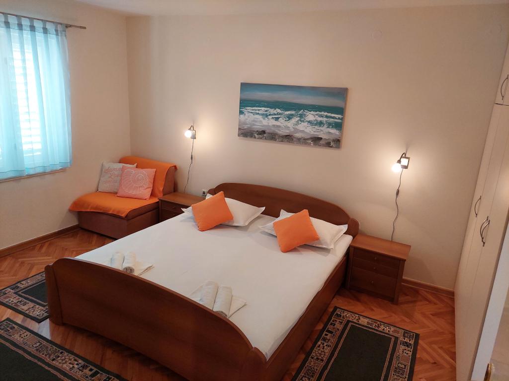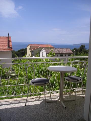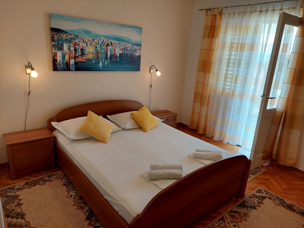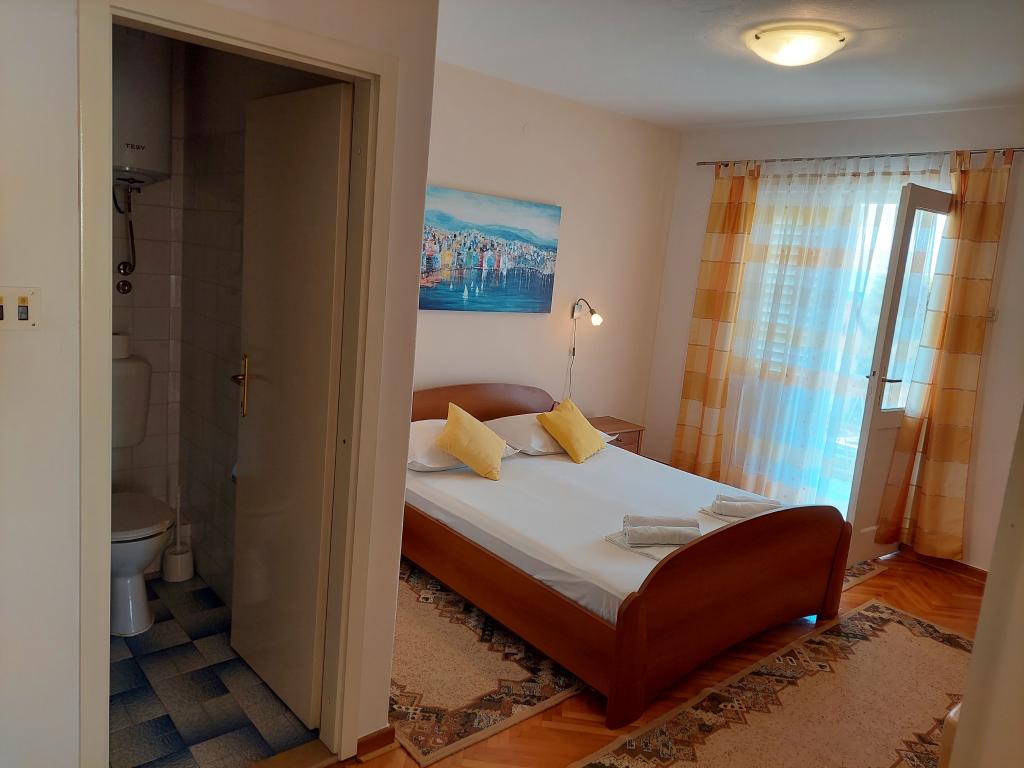 Apartamenty znajdują się na oddzielnym piętrze domu rodzinnego, otoczonego zielenią i kwiatami. Dla samochodów wszystkich gości przewidziano miejsca parkingowe na ogrodzonym podwórzu. Każdy apartament posiada 1-2 balkony, na których można wypić przyjemną poranną kawę z widokiem na morze i wyspy Brač i Hvar. Do pięknej kamienistej plaży z gęstym lasem sosnowym można dojść w 5 minut, a do centrum tenisowego w dziesięć minut. Do centrum miasta można dotrzeć w 15-20 minut pięknie zagospodarowaną promenadą wzdłuż morza. Apartament A4+1 jest odpowiedni zarówno dla rodziny, jak i grupy przyjaciół, ponieważ zawiera 2 przestronne sypialnie z 2 łazienkami, salon z jadalnią oraz kuchnię wyposażoną w niezbędne naczynia i sprzęt AGD (lodówka z zamrażarką, kuchenka z piekarnik, kuchenka mikrofalowa, ... ). Mieszkanie jest klimatyzowane i posiada dwa balkony, wyposażone w stoły i krzesła oraz markizy. Studio jest nowocześnie wyposażone w mini kuchnię, podwójne łóżko, klimatyzację i telewizor, a także łazienkę z prysznicem i balkon ze stołem i krzesłami.