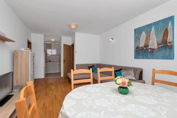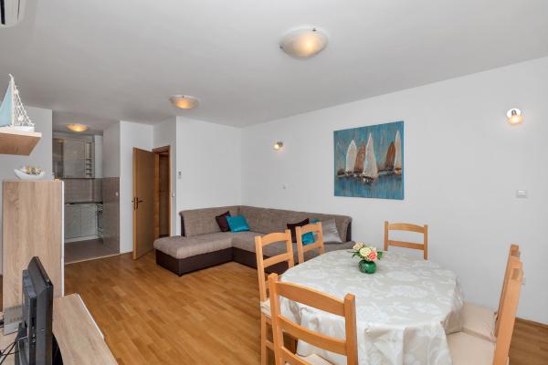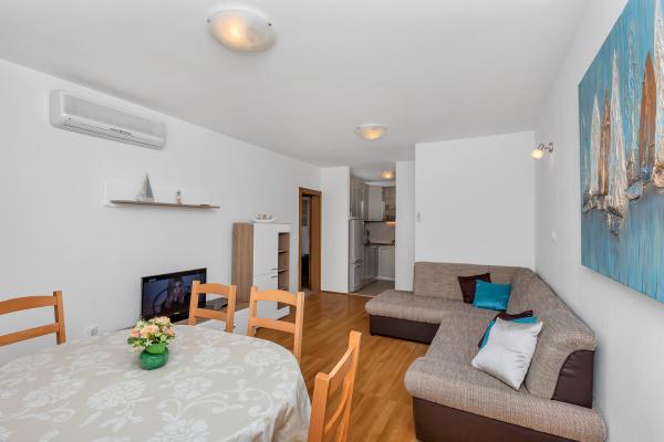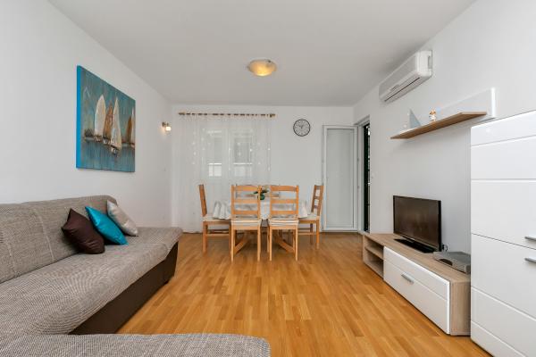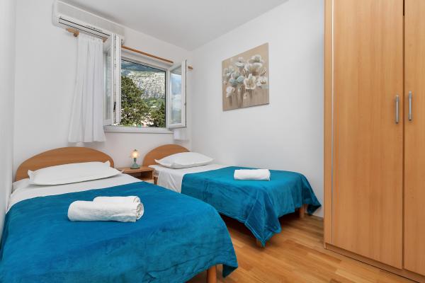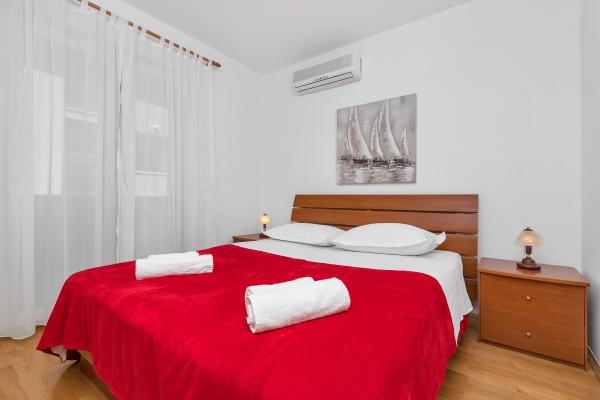 Oferujemy Państwu komfortowo i nowocześnie wyposażony apartament w centrum Makarskiej, z dala od plaży, tylko 50m. Mieszkanie składa się z dwóch sypialni, łazienki, kuchni, salonu i balkonu. Wszystkie pokoje są klimatyzowane, telewizor, bezpłatny dostęp do Internetu. Parking jest zabezpieczony. Piękna, długa plaża otoczona sosnami leży przed domem. W pobliżu znajdują się restauracje, plac zabaw dla dzieci, apteka, sklepy ... Rezerwacje wymagają 20% zaliczki. W przypadku wszystkich pytań jestem do Twojej dyspozycji. Pozdrawiam, Katarina Birgmajer
