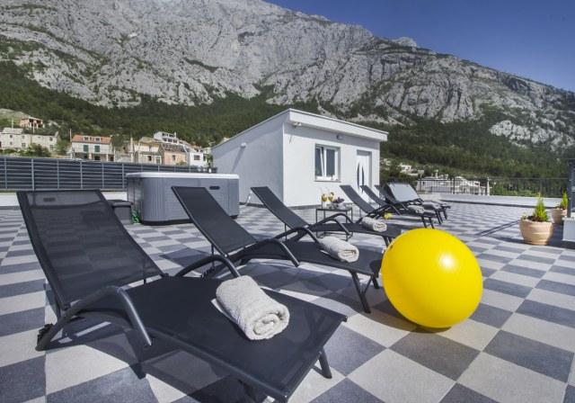 Big Hill Apartments and Studio znajduje się w zachodniej części Makarskiej, w powiecie splicko-dalmatyńskim. Apartamenty znajdują się w spokojnej części przedmieścia Veliko Brdo obok kościoła św. Jerolima. Nieruchomość otoczona jest stuletnimi gajami oliwnymi i krzewami lawendy! Wszystkie kwatery mają piękny widok na morze i wyspy, a na szczycie domu znajduje się spa z jacuzzi i leżakami dostępne dla wszystkich gości. Widok z tarasu jest spektakularny i pozostawia wszystkich naszych gości bez słowa, przed widokiem na morze i wyspy, a w tle góry Biokovo. W pobliżu mamy dwie restauracje, duży supermarket. !! Najbliższa plaża oddalona jest o 2 km, a centrum miasta o 3,5 km! Wszystkie jednostki noclegowe są nowocześnie umeblowane i wyposażone w klimatyzację, bezpłatny internet w całym budynku, parking przed budynkiem.