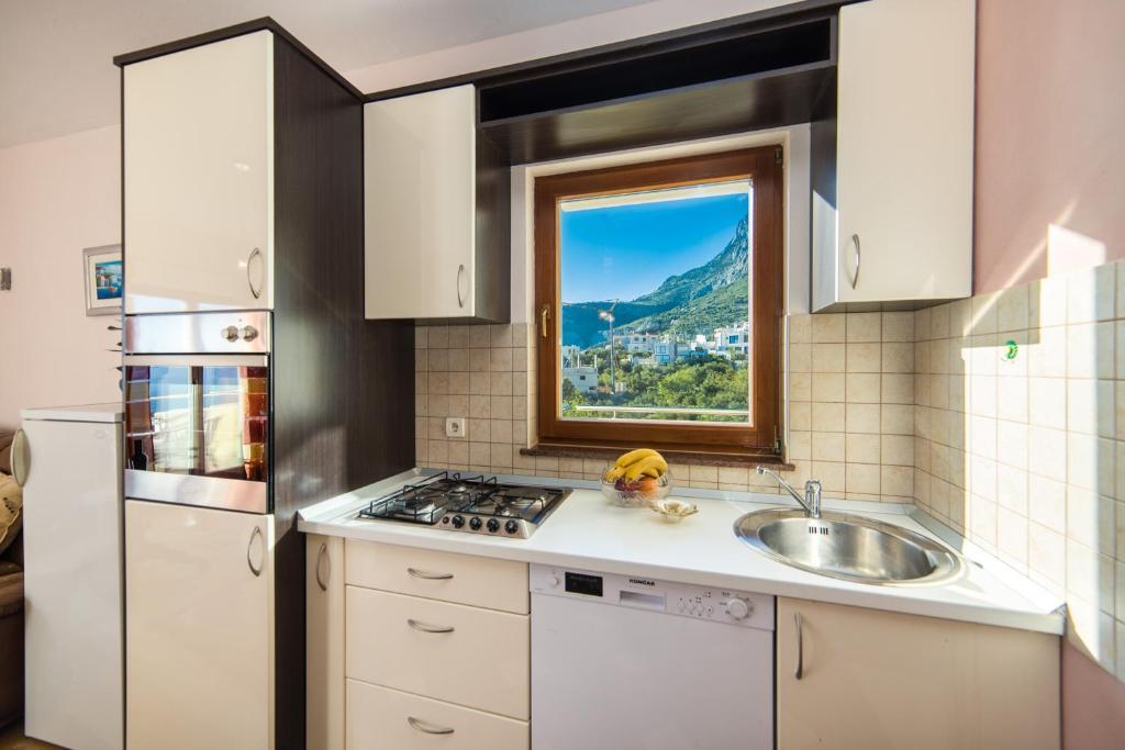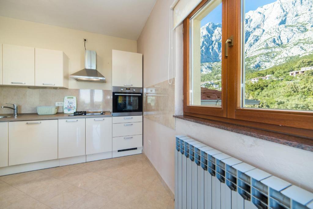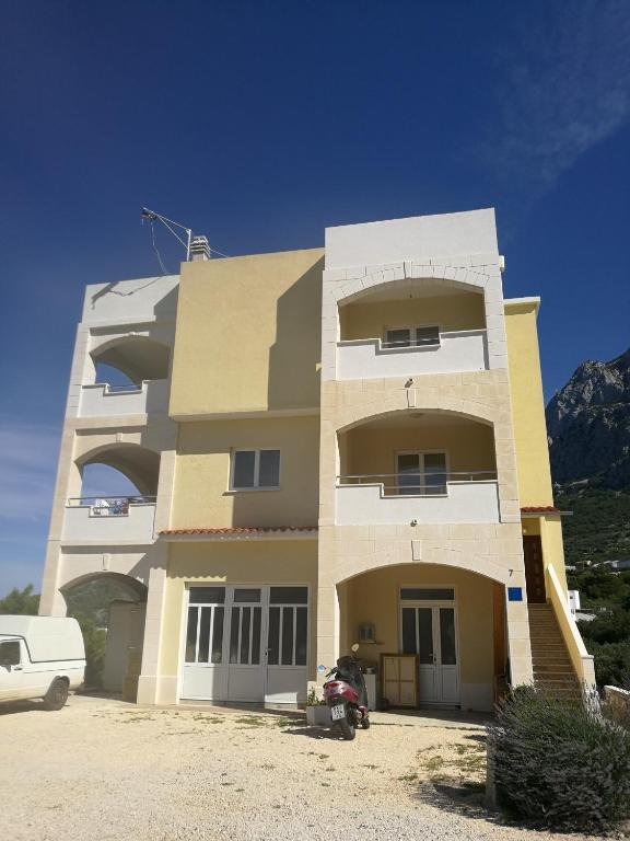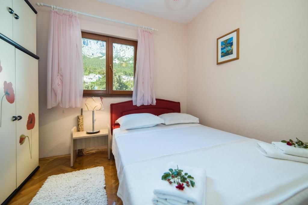 Znajduje się on w dzielnicy Makarskiej Wielkiej Hill. Apartamenty znajdują się w cichej okolicy, 0kruženi drzewa oliwne i świeże górskie powietrze jest wygodne łóżko, a także ścieżki spacerowe wiejskich. Apartamenty są idealne dla rodzin, którzy przyjeżdżają samochodem, a gdzie jest to ważne nie tylko w pobliżu morza, ale także przyjemne i relaksujące wakacje bez hałasu. Do pięknej, piaszczystej plaży w 4 minuty kolima.Parking na plaży dla całych kosztów dziennych 1do3 euro, w zależności od miesiąca ljetovanja.Apartmani się 2 interesów, które oferują zapierające dech w piersiach widok na miasto Makarskiej i pobliskim otoke.Sa strony północnej z widokiem góra Biokovo.Apartmani są na pierwszym piętrze, klimatyzowane i wygodne miejsce na pobyt.