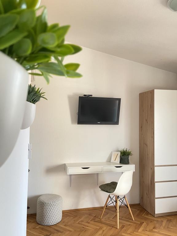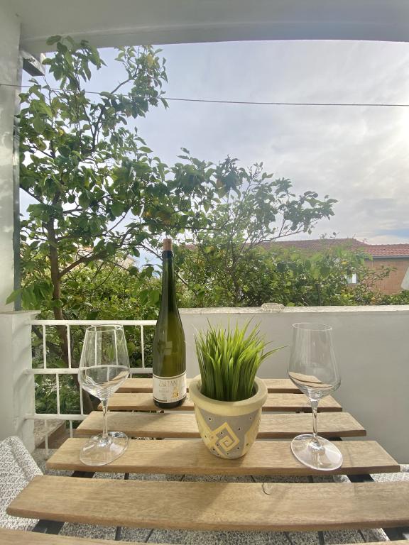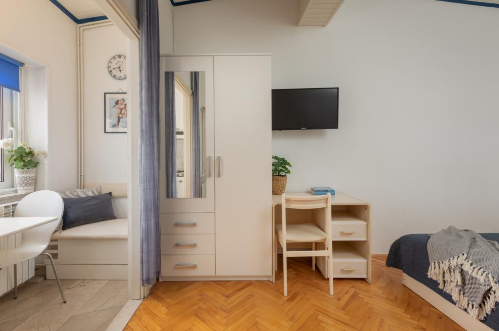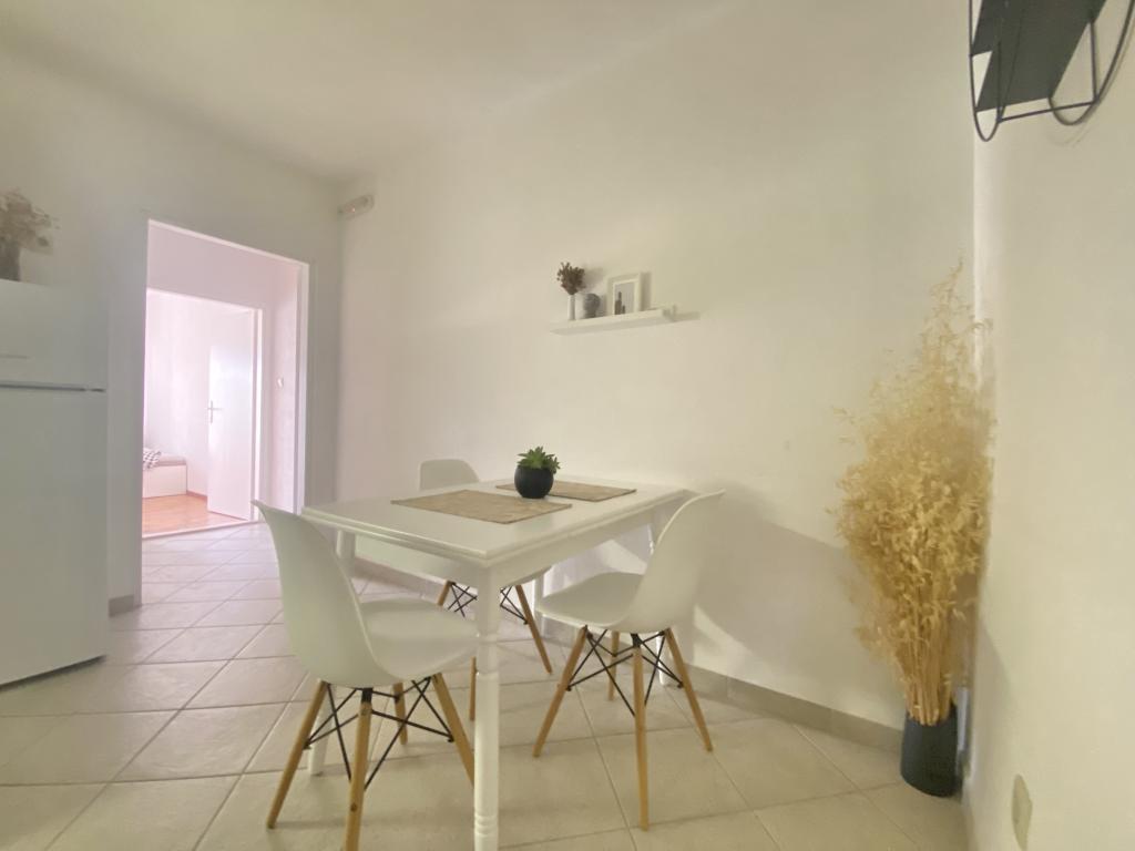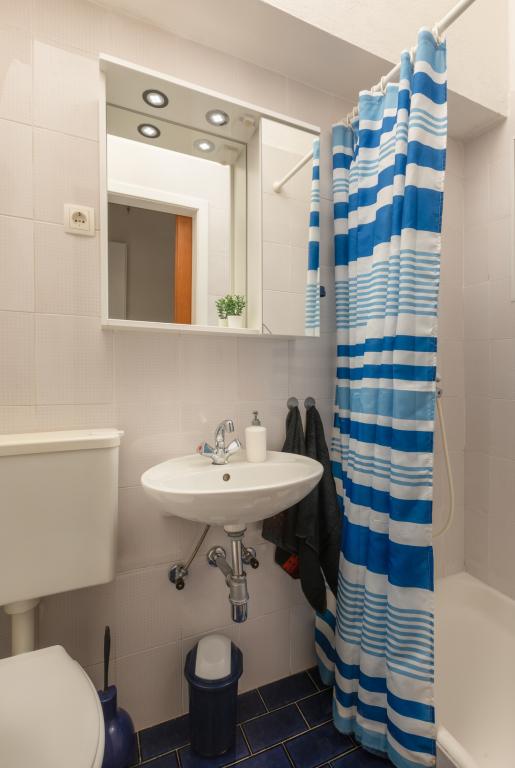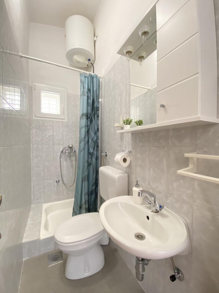 Apartament 5+4 jest idealny dla rodzin z dziećmi. Posiada dwie sypialnie (jedna dla 2 i jedna dla 3 osób), dwie rozkładane sofy w salonie, 3 łazienki, kuchnię oraz duże podwórko z miejscem do siedzenia, grillem i placem zabaw dla dzieci. Mniejsze mieszkania i pokoje w budynku przystosowane są dla 2 do 3 osób. Obiekt oddalony od plaży do 5 minut spacerkiem i 10 minut do centrum.