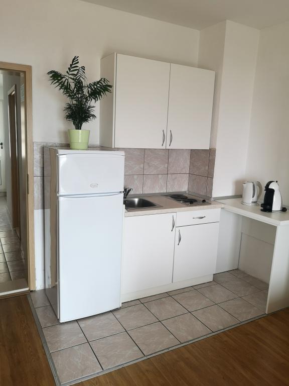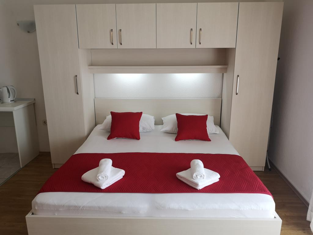 Apartamenty Dević znajdują się powyżej ścisłego centrum miasta Makarska, w spokojnej okolicy z pięknym widokiem na miasto, morze i okoliczne wyspy Brač i Hvar. Piękna żwirowa plaża oddalona jest o zaledwie 1000 m. Apartamenty otoczone są pachnącą śródziemnomorską roślinnością, która uczyni Państwa pobyt bardziej zrelaksowanym i przyjemnym. Mieszkanie posiada własny parking, balkon z widokiem na morze, kuchnię wyposażoną w sprzęt AGD, naczynia i naczynia, sypialnię, łazienkę z prysznicem, klimatyzację i telewizor.