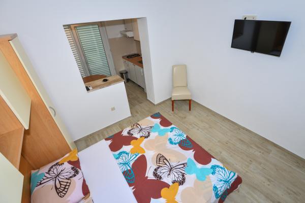 Apartamenty Dina to tylko kilka minut spacerem do plaży, w cichej ulicy, nie ma hałasu. Do centrum miasta zajmuje mniej niż 5 minut pieszo, aw pobliżu jest wszystko, czego potrzeba, sklepy, restauracje, dyskoteka, plaża ...