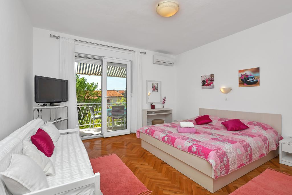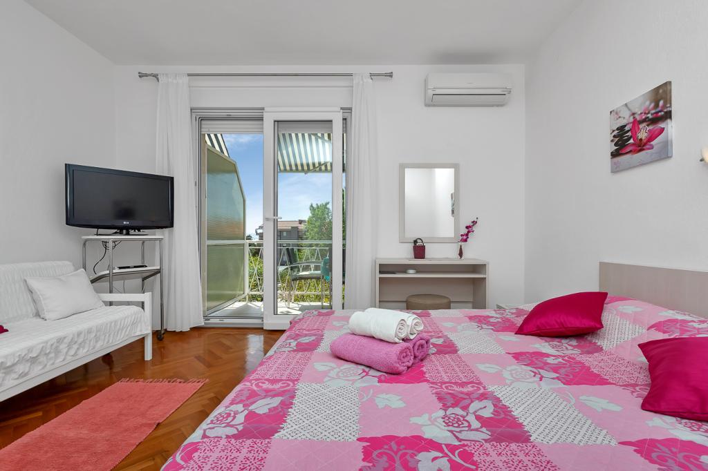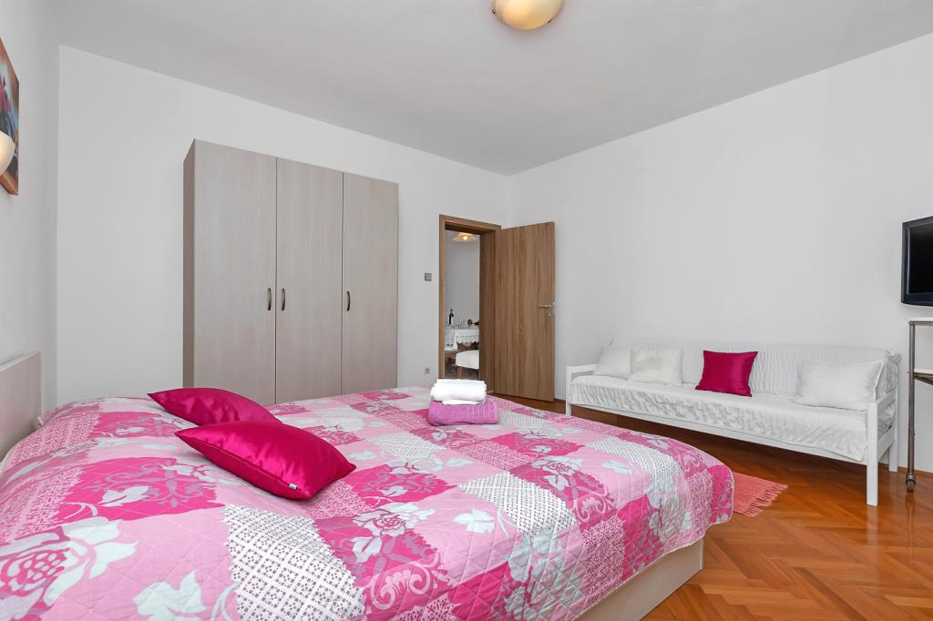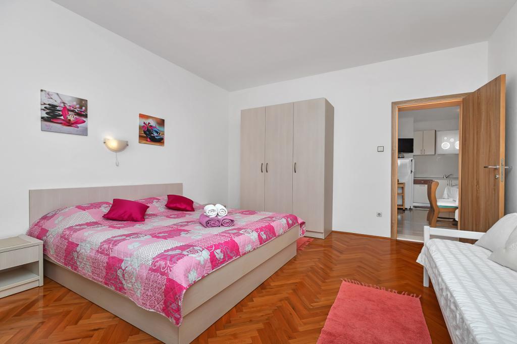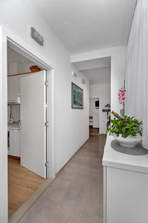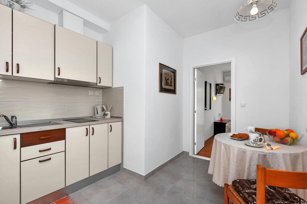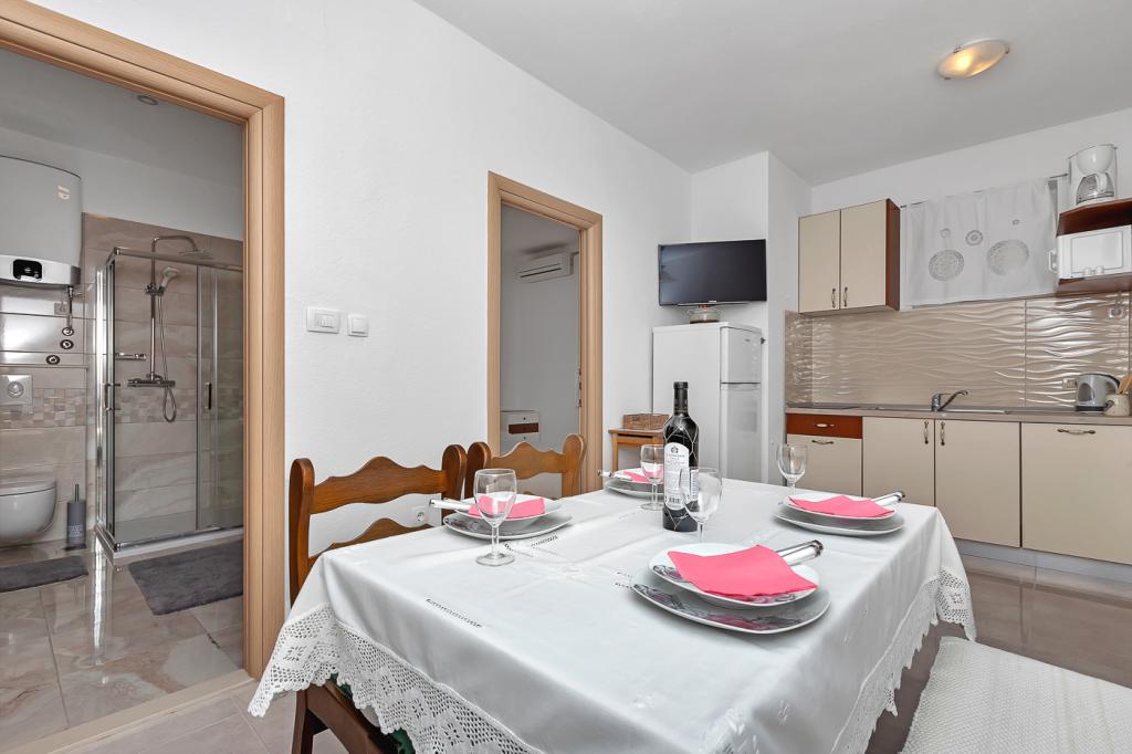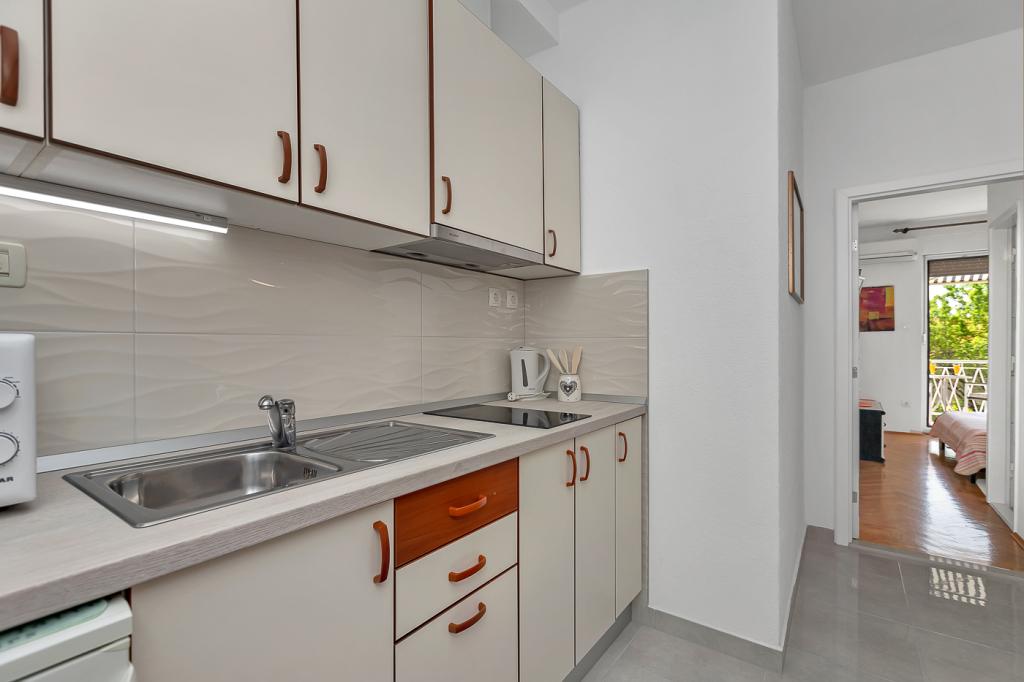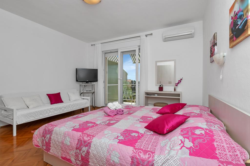 Nasze nowocześnie wyposażone apartamenty znajdują się w rodzinnym domu w spokojnej części miasta, pomiędzy hotelem Biokovka a hotelem Places-Dalmacija. Piaszczysta plaża znajduje się zaledwie 50 metrów od domu, a także dwa sklepy spożywcze. Do centrum miasta można dotrzeć w 10 minut spacerując piękną promenadą otoczoną sosnami, wzdłuż której znajdują się liczne restauracje i inne ciekawe obiekty. Do dyspozycji mamy 3 jednostki noclegowe, każda z własnym balkonem, wyposażoną kuchnią oddzieloną od części sypialnej oraz oddzielnymi łazienkami. Cena obejmuje parking, internet, klimatyzację i opłatę klimatyczną.