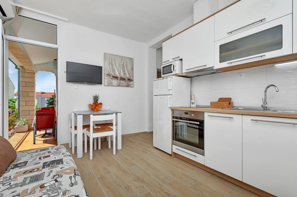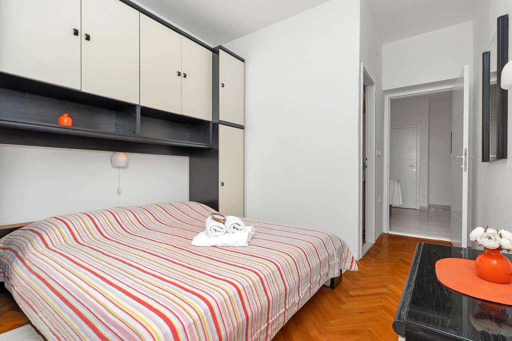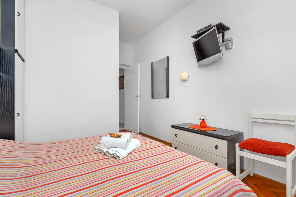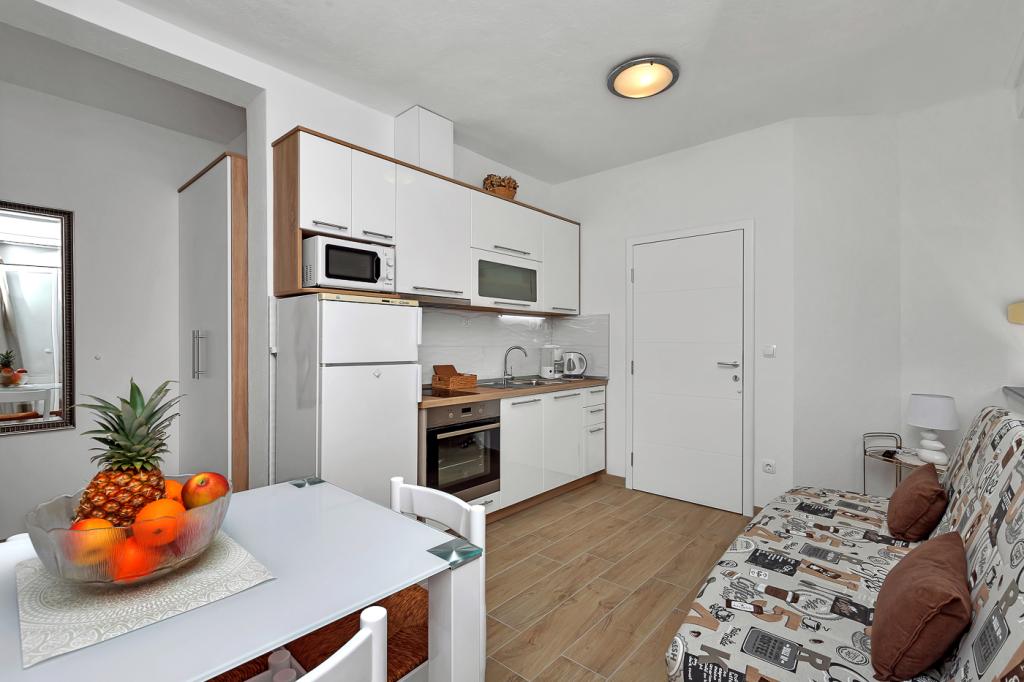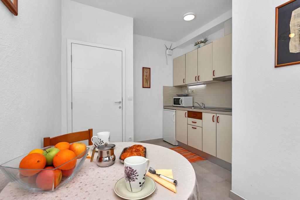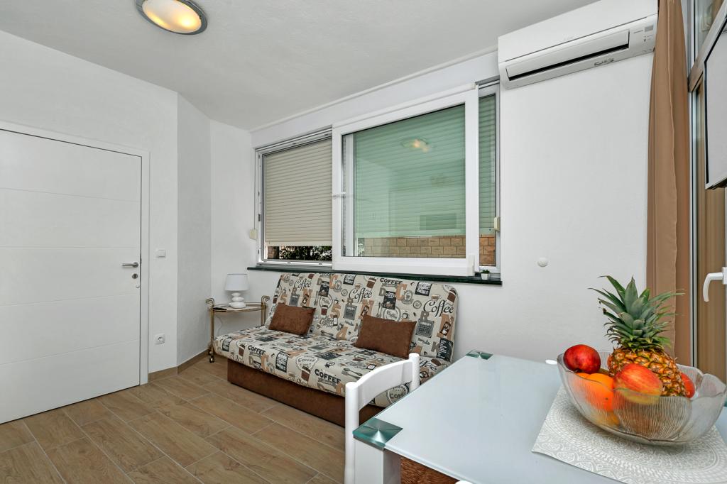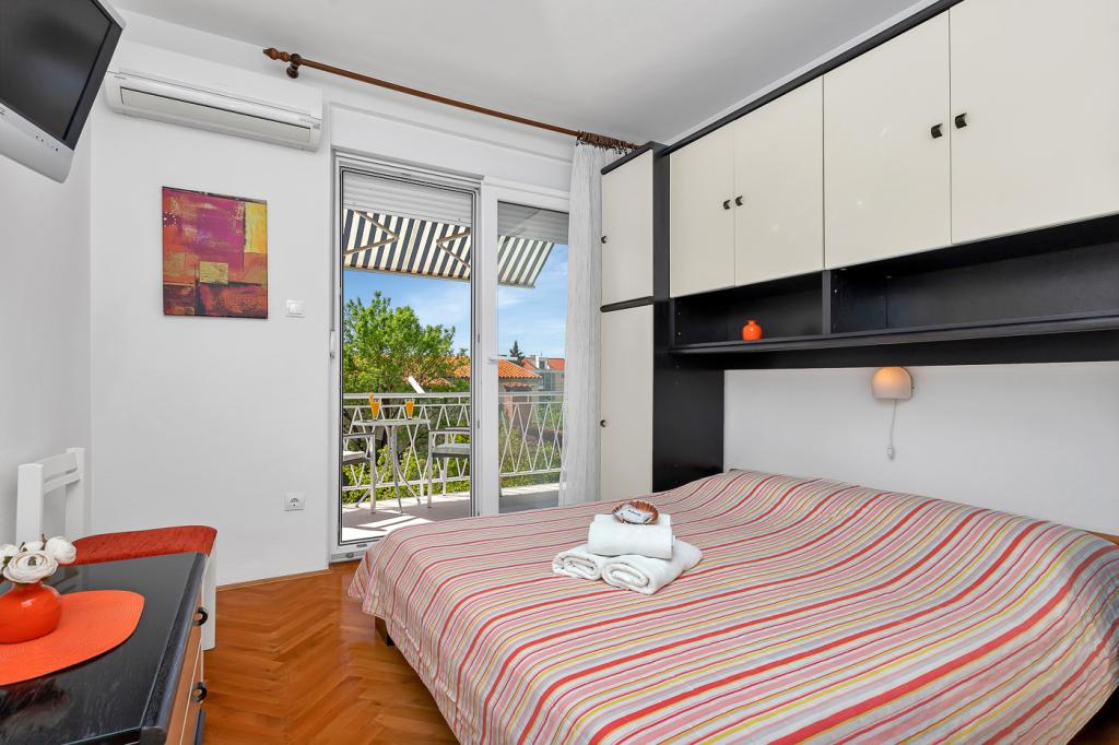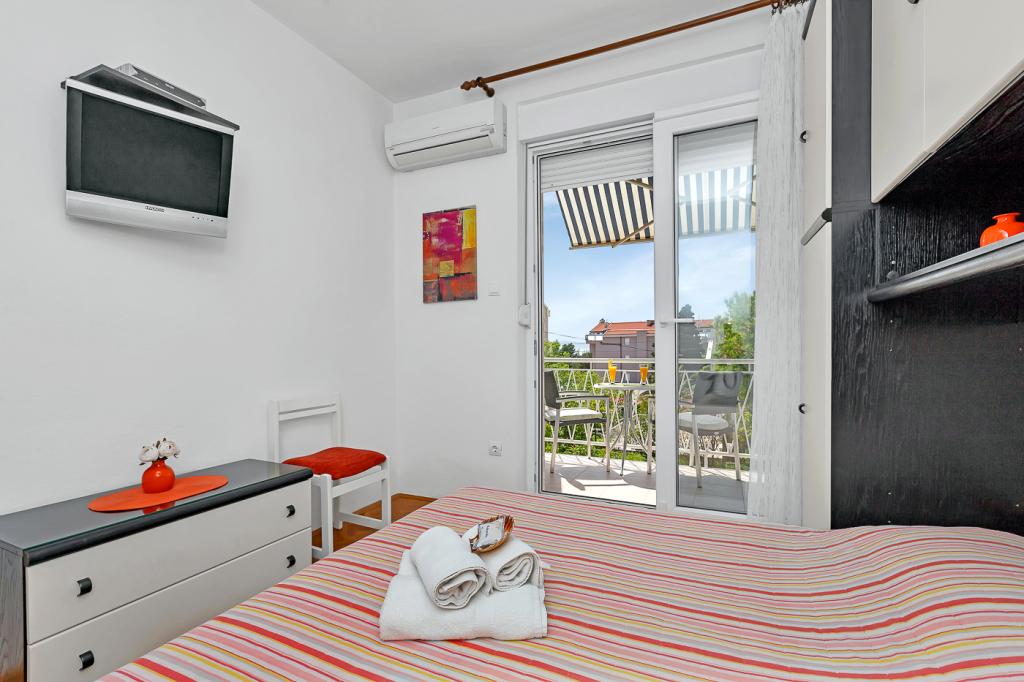 Nasze nowocześnie wyposażone apartamenty znajdują się w rodzinnym domu w spokojnej części miasta, pomiędzy hotelem Biokovka a hotelem Places-Dalmacija. Piaszczysta plaża znajduje się zaledwie 50 metrów od domu, a także dwa sklepy spożywcze. Do centrum miasta można dotrzeć w 10 minut spacerując piękną promenadą otoczoną sosnami, wzdłuż której znajdują się liczne restauracje i inne ciekawe obiekty. Do dyspozycji mamy 3 jednostki noclegowe, każda z własnym balkonem, wyposażoną kuchnią oddzieloną od części sypialnej oraz oddzielnymi łazienkami. Cena obejmuje parking, internet, klimatyzację i opłatę klimatyczną.