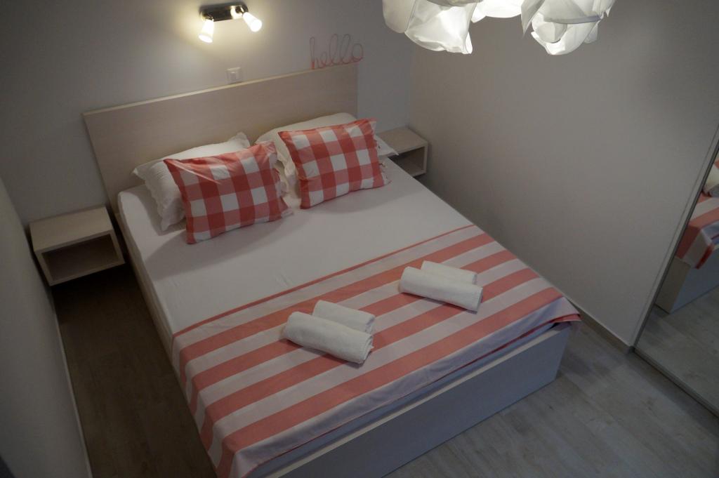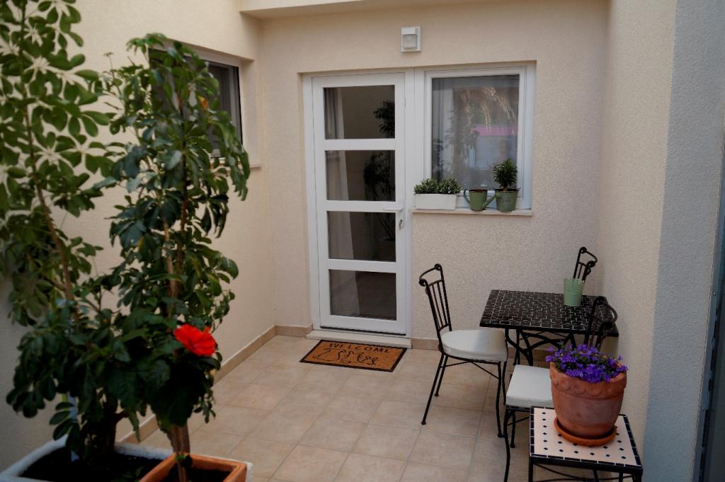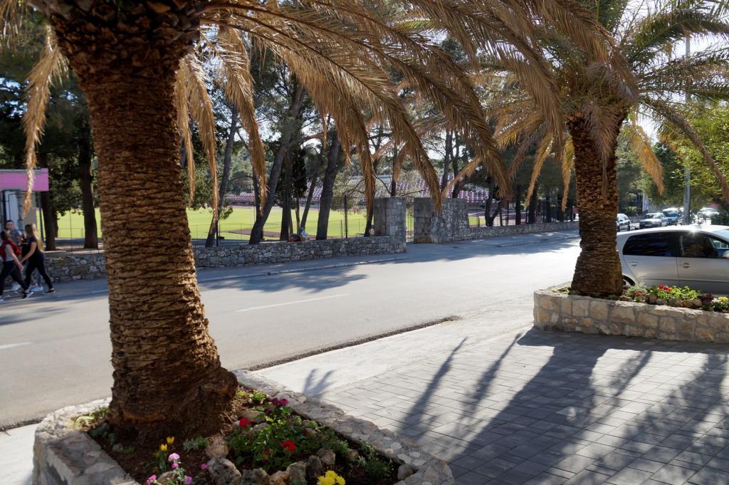 Apartamenty Frapedo znajdują się zaledwie 300 metrów od morza, nabrzeża i centrum miasta. W pobliżu supermarketu znajduje się Lidl (200 m), centrum zdrowia 100 m, muzeum muszli 100 m. Naprzeciwko apartamentu znajduje się centrum sportowe z boiskami do piłki nożnej, tenisa, lekkoatletyki, koszykówki, siłowni, krytym basenem, siłownią. 3 minuty spacerem bez wspinaczki musisz dotrzeć do nabrzeża miasta, pierwszych kawiarni i restauracji lub do centrum miasta. Główna plaża miejska znajduje się po drugiej stronie nabrzeża miasta, 10 minut spacerem od hotelu, a najbliższa plaża obok hotelu Osejava znajduje się 250 metrów od hotelu. Przed domem znajduje się parking dla pojazdu, a obok każdego mieszkania część wypoczynkowa. Apartamenty są nowe i wyposażone we wszystkie niezbędne urządzenia, aby zapewnić im komfortowy pobyt. Długoletnia tradycja turystyczna naszej rodziny jest gwarancją, że pobyt w naszych apartamentach będzie przyjemnym doświadczeniem