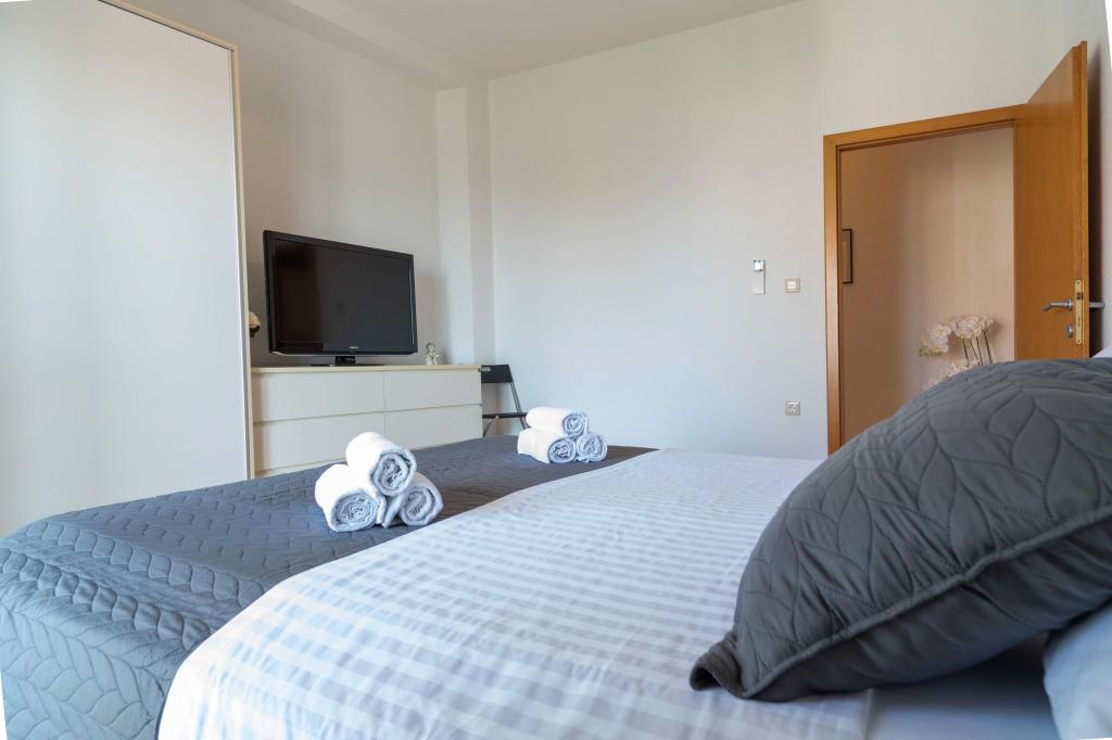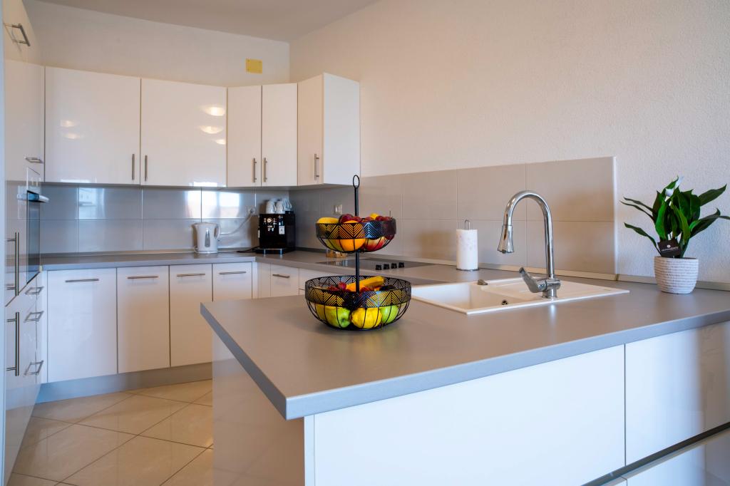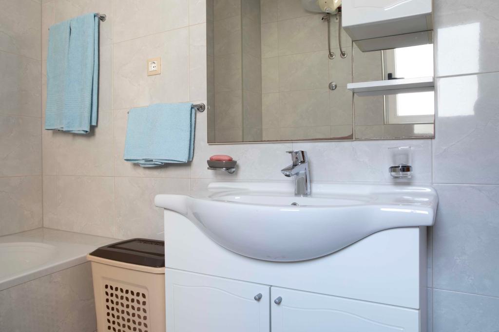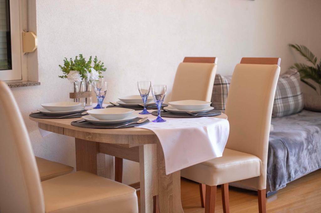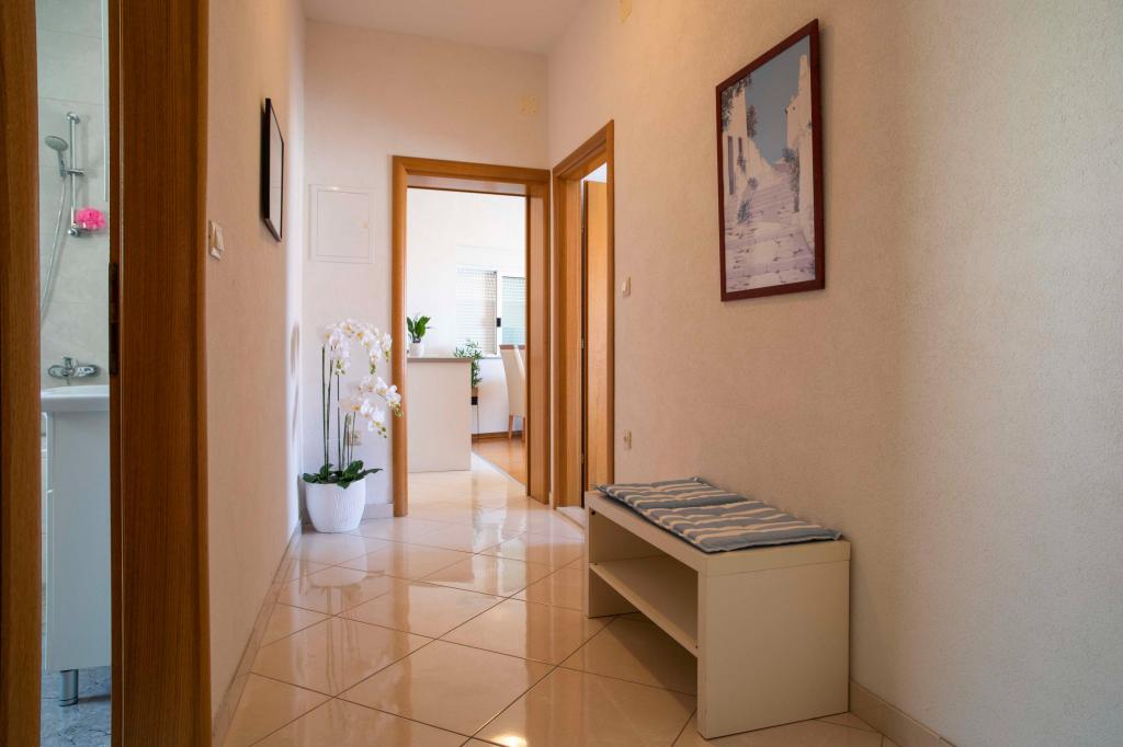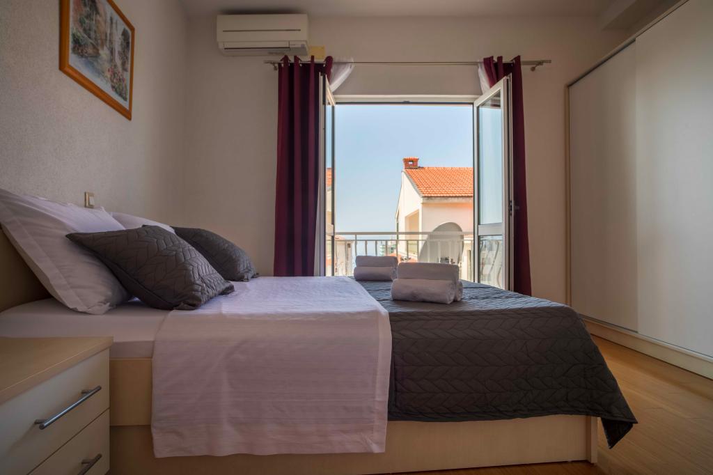 Zapraszamy do apartamentu "Ivana" z widokiem na morze i garażem. Idealny dla 2 osób dorosłych i 4 dzieci. Składa się z sypialni, łazienki, salonu z 2 rozkładanymi sofami oraz w pełni wyposażonej kuchni. W salonie i sypialni znajdują się klimatyzatory.