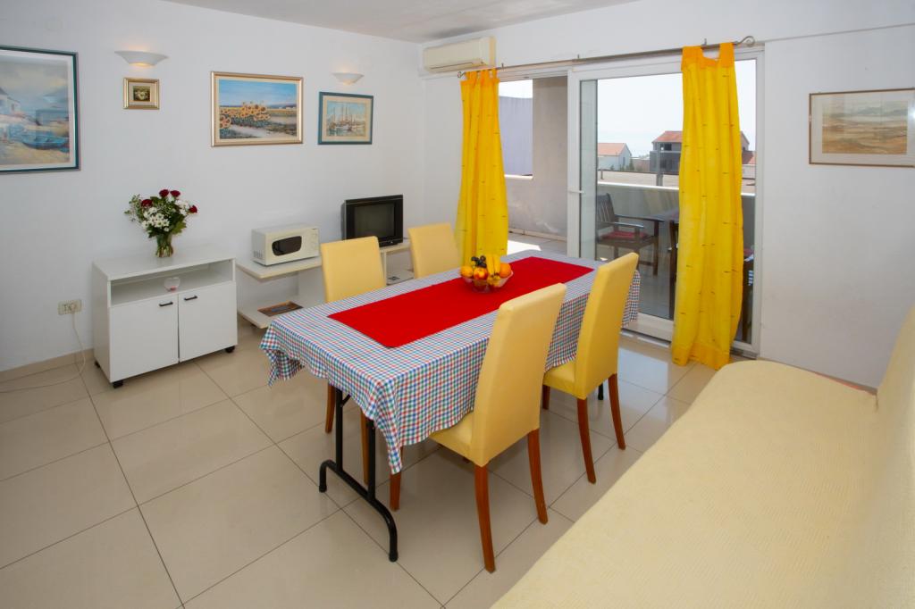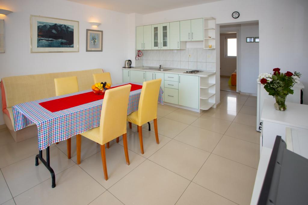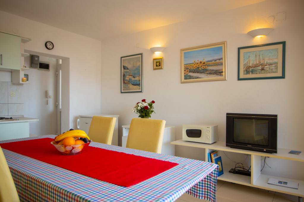 Gorąco polecamy apartament A4+1 korzystaliśmy jako 4 osobowa rodzina i byliśmy w 100% zadowoleni. Gospodarze są bardzo gościnni zawsze można liczyć na degustację świeżych warzyw i owoców z ogródka oraz lokalnych smażonych sardynek z cebulką specjalność Slobodana :) Wino i trawarica, którą robi gospodarz godne polecenia. Okolica sprzyjająca nie tylko leżakowaniu na plaży ale można pozwiedzać okolice jest co :)