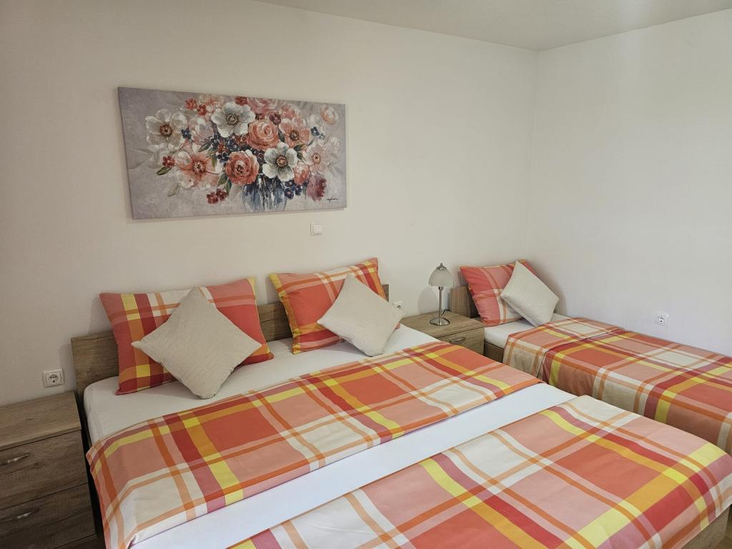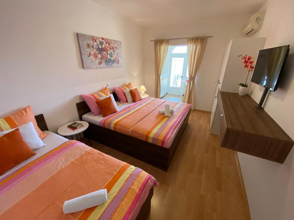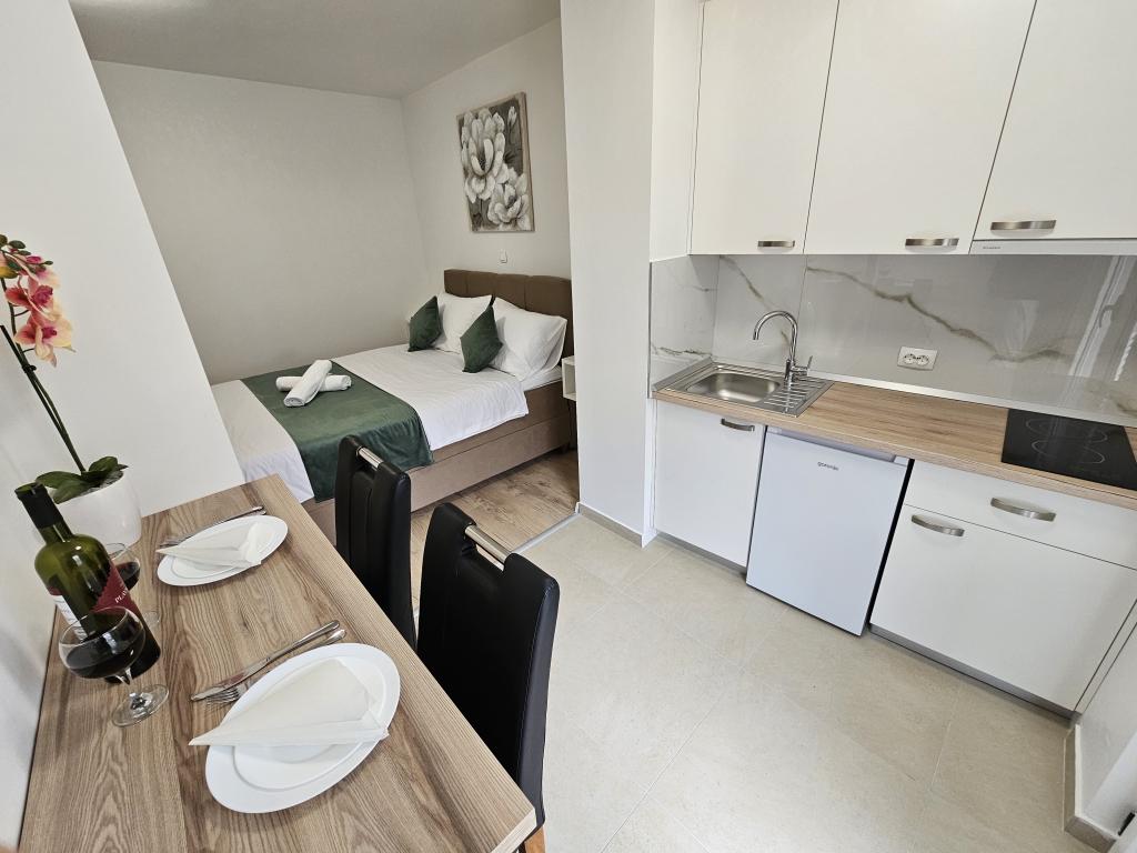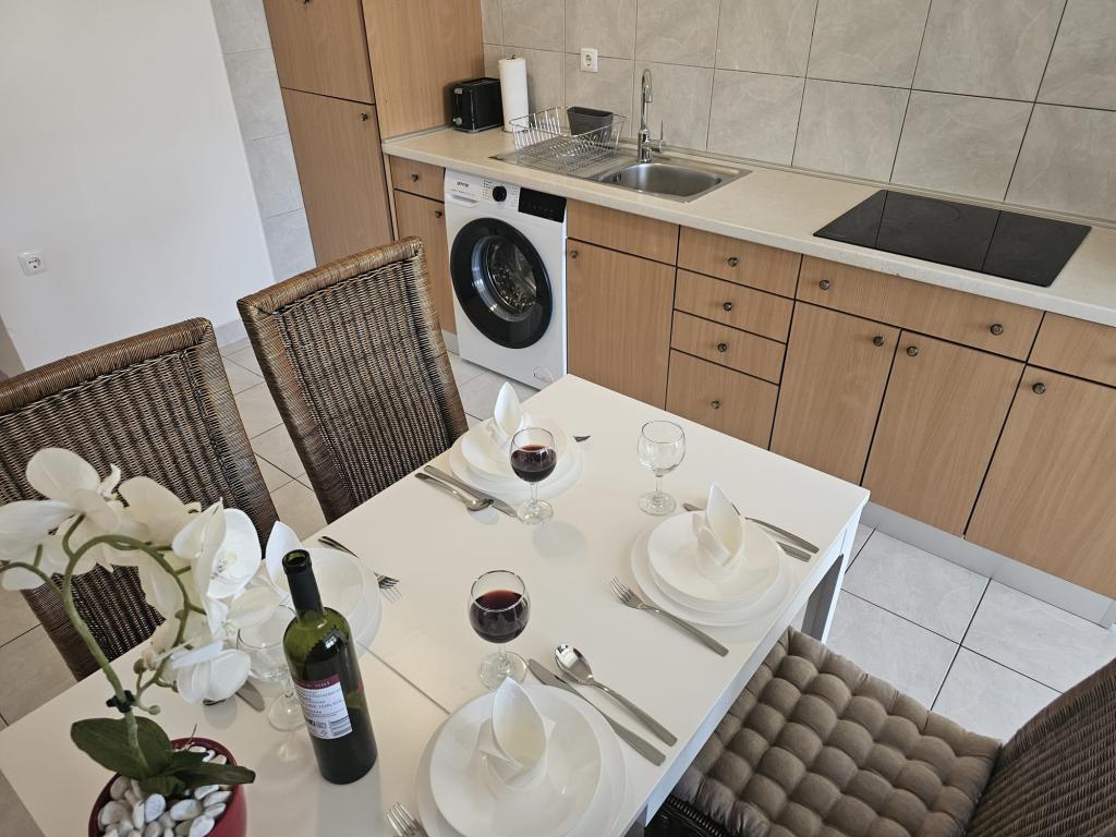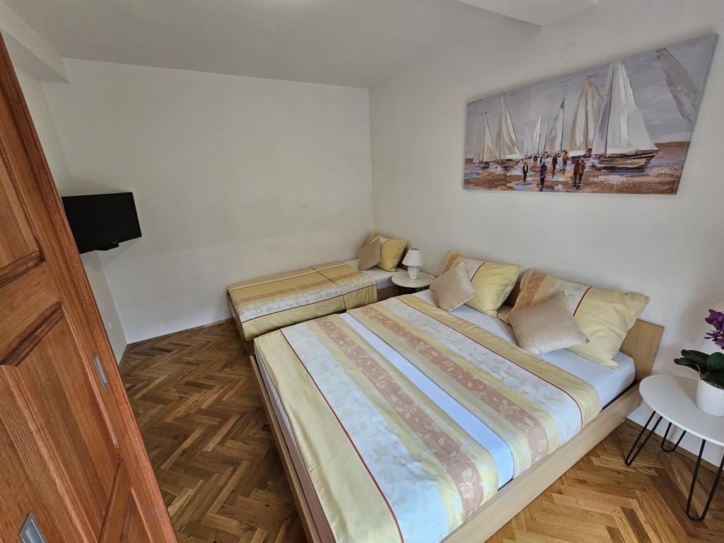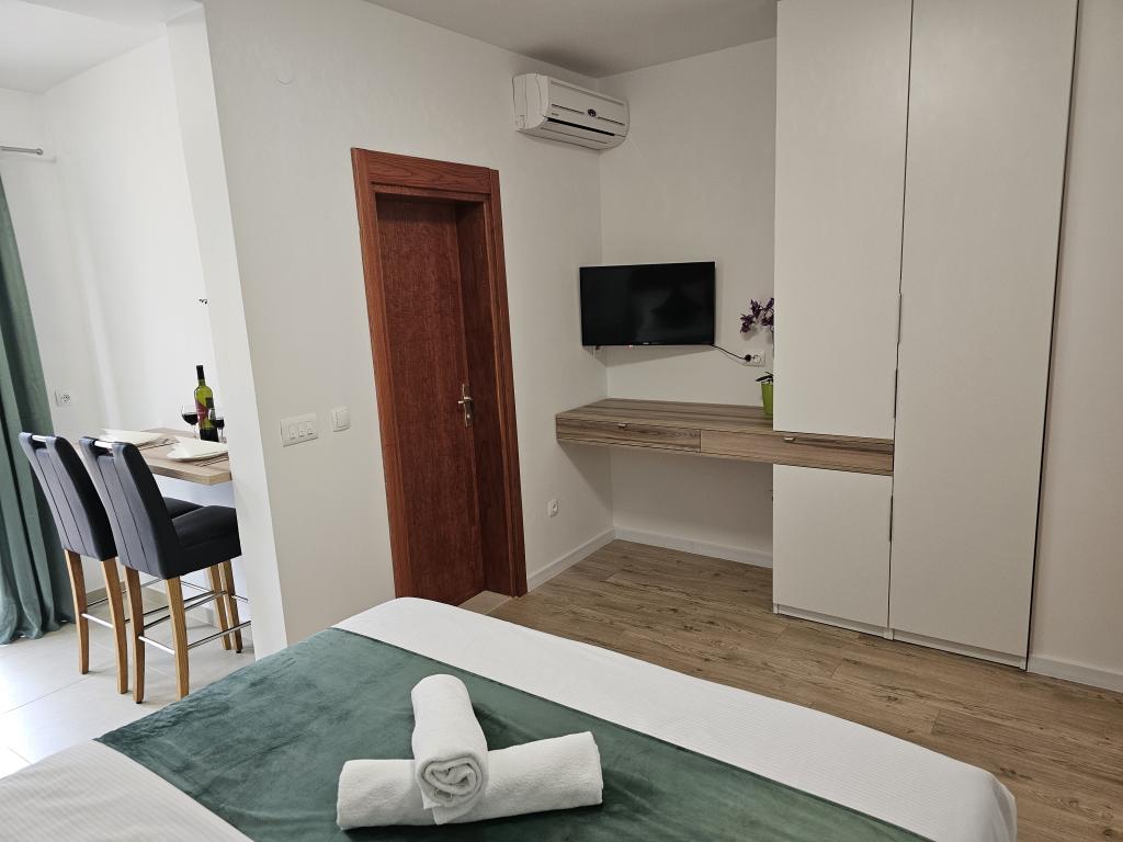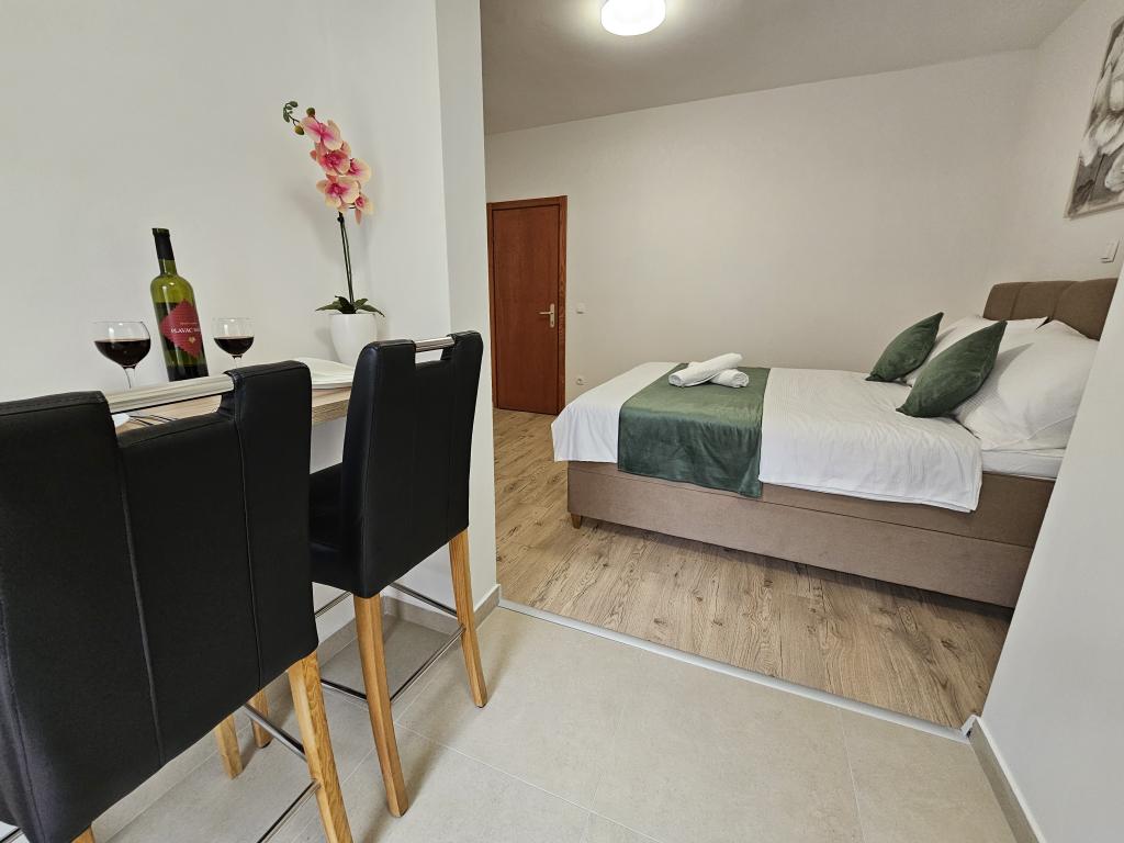 Apartamenty Kovač to nowocześnie urządzone apartamenty położone w samym sercu miasta Makarska. Plaża miejska znajduje się w odległości 250 metrów (mniej niż 5 minut pieszo), a do centrum miasta można dotrzeć w mniej niż 15 minut, spacerując piękną promenadą wzdłuż, naszym zdaniem, najpiękniejszej plaży na świecie. W zasięgu ręki znajdują się restauracje, piekarnia i apteka, a najbliższy sklep, w którym można zrobić codzienne zakupy, znajduje się zaledwie 50 metrów od apartamentu. W każdym apartamencie znajduje się łazienka, w pełni wyposażona kuchnia, balkon, klimatyzacja i wszelkie niezbędne udogodnienia, dzięki którym nasi goście mogą poczuć się jak w domu. Po północnej stronie domu znajduje się garaż, dzięki czemu każdy gość ma zapewnione bezpłatne, zadaszone miejsce parkingowe, z którego może swobodnie wjechać i wyjechać o każdej porze. Cała nasza rodzina od wielu lat zajmuje się turystyką i wynajmem. Mamy nadzieję, że będziemy mieli okazję gościć Państwa w naszym ośrodku, gdzie przyjedziecie jako goście, a wyjedziecie jako przyjaciele.