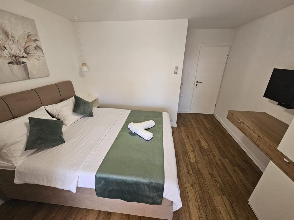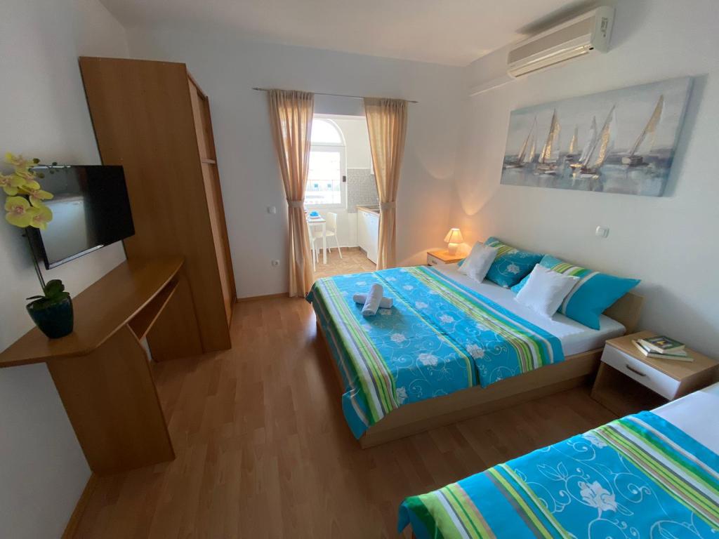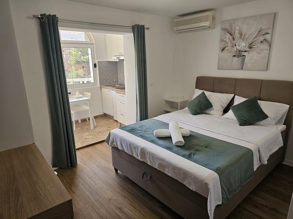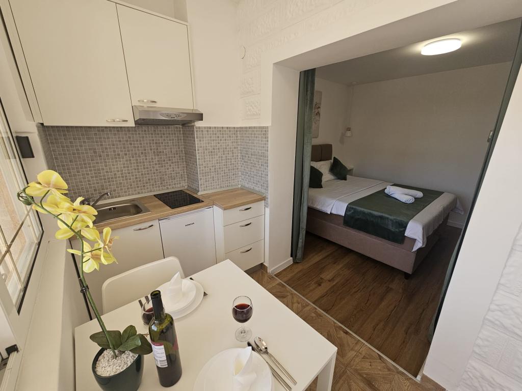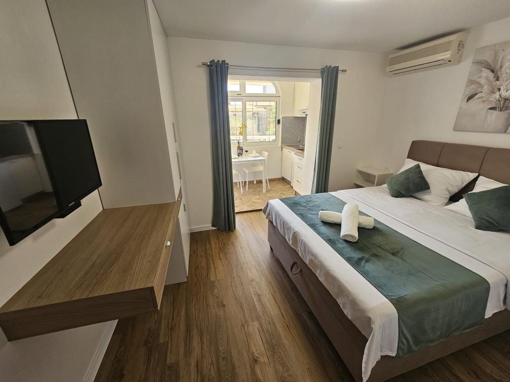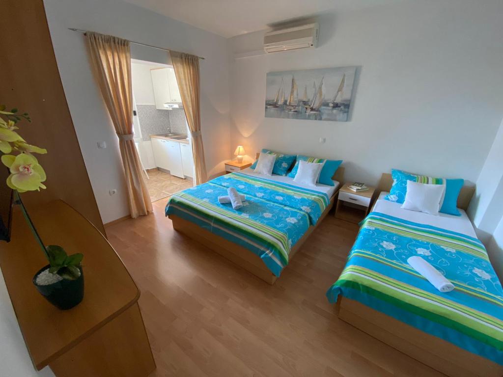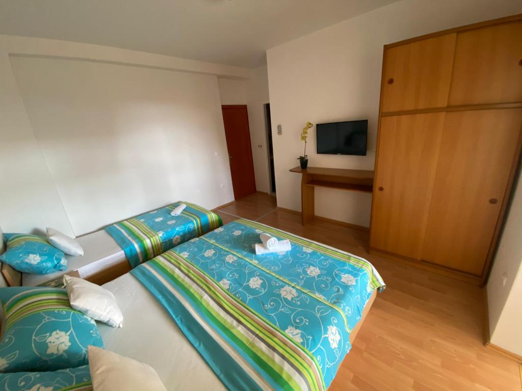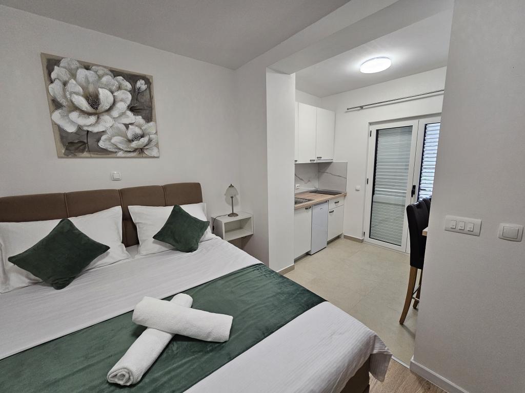 Apartamenty Kovač to nowocześnie urządzone apartamenty położone w samym sercu miasta Makarska. Plaża miejska znajduje się w odległości 250 metrów (mniej niż 5 minut pieszo), a do centrum miasta można dotrzeć w mniej niż 15 minut, spacerując piękną promenadą wzdłuż, naszym zdaniem, najpiękniejszej plaży na świecie. W zasięgu ręki znajdują się restauracje, piekarnia i apteka, a najbliższy sklep, w którym można zrobić codzienne zakupy, znajduje się zaledwie 50 metrów od apartamentu. W każdym apartamencie znajduje się łazienka, w pełni wyposażona kuchnia, balkon, klimatyzacja i wszelkie niezbędne udogodnienia, dzięki którym nasi goście mogą poczuć się jak w domu. Po północnej stronie domu znajduje się garaż, dzięki czemu każdy gość ma zapewnione bezpłatne, zadaszone miejsce parkingowe, z którego może swobodnie wjechać i wyjechać o każdej porze. Cała nasza rodzina od wielu lat zajmuje się turystyką i wynajmem. Mamy nadzieję, że będziemy mieli okazję gościć Państwa w naszym ośrodku, gdzie przyjedziecie jako goście, a wyjedziecie jako przyjaciele.