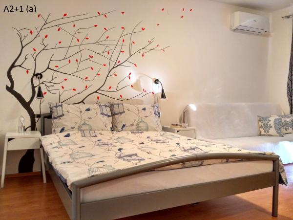 Szczerze polecam apartamenty Kruno, byliśmy w apartamencie 7+2, 3 dorosłych i 4 dzieci. Apartament przestronny, czysto i przyjemnie, jest wszytsko czego potrzeba do codziennego funkcjonowania, można się poczuć jak u siebie w domu. Cenowo bardzo przystępnie. Blisko do plaży, piekarni i marketu. Położenie idealne, nie trzeba było wchodzić daleko pod górę. Szczerze polecam.