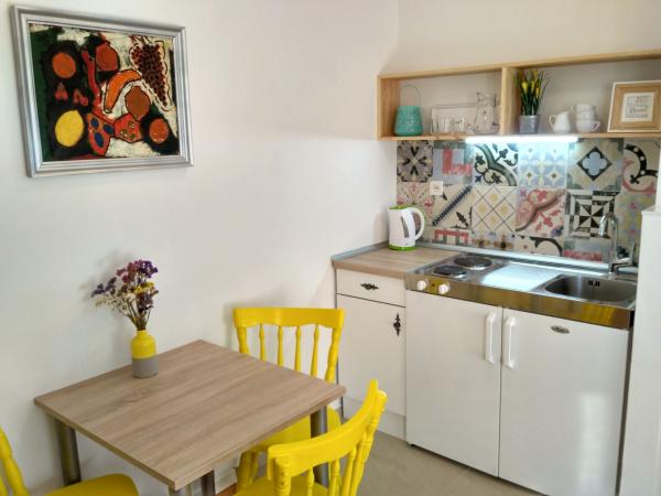 Apartament skromny, ale wszystko co potrzeba na wakacjach jest. Nawet żelazko się znalazło, ku uciesze mojego męża ha ha. W apartamencie można śmiało ugotować obiad, zrobić ręczne pranie (poza oknem są sznurki do wywieszenia), okolica cicha i spokojna z widokiem na dwa piękne drzewa: figę i oliwkę, a za nimi górę. Gospodarz Kruno jest bardzo przyjacielski i pomocny. Przywitał nas z uśmiechem i z takim samym uśmiechem pożegnał. Dziękujemy Kruno za wspaniały pobyt!