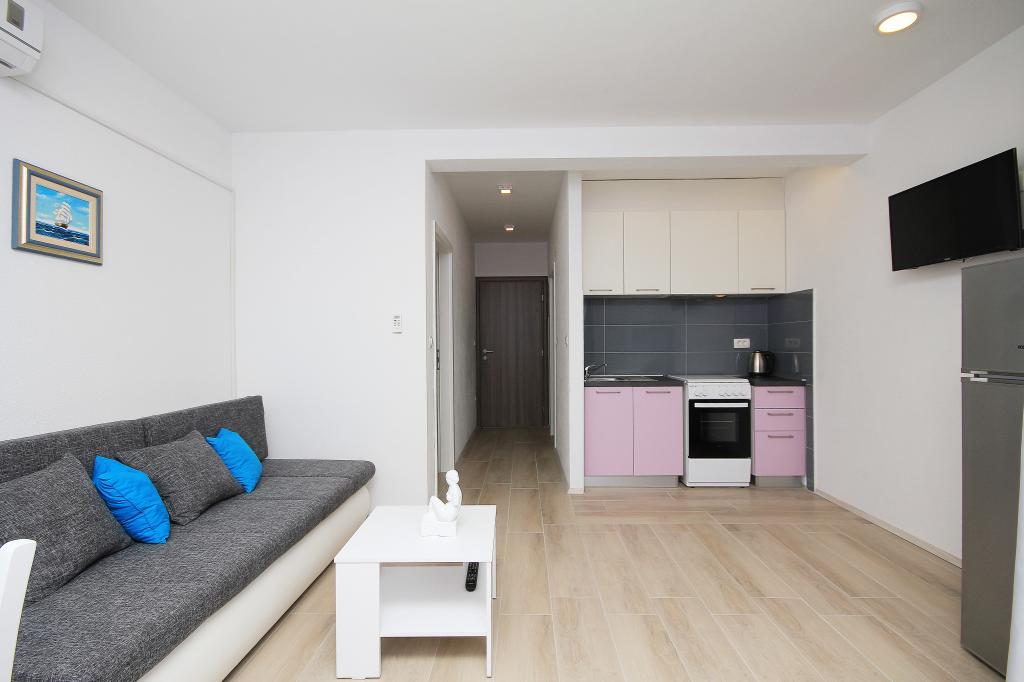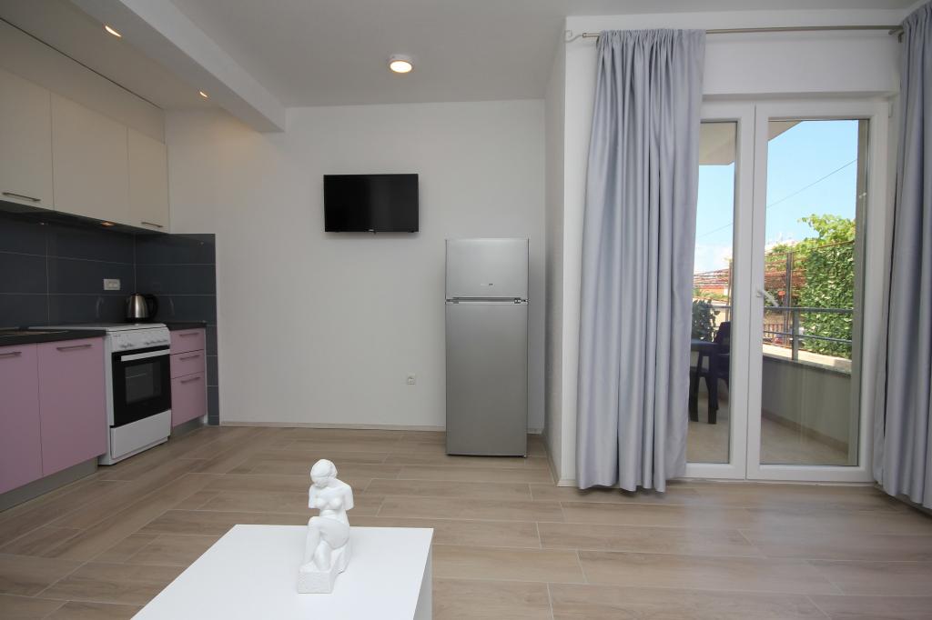Mieszkanie znajduje się w spokojnej części miasta, z bezpłatnym parkingiem, 2 minuty spacerem od morza.W pobliżu znajdują się wszystkie udogodnienia, takie jak targ, market, restauracja, piekarnia, bankomat, apteka.