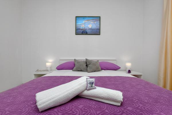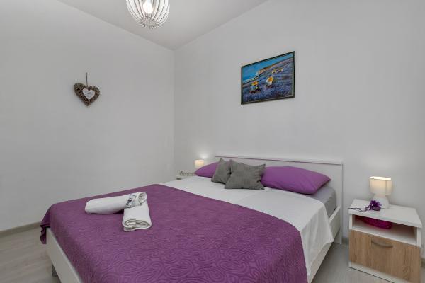 Apartamenty Martina oferują przyjemne wakacje w rodzinnym domu, 50 m od plaży miejskiej i tylko 300 m od centrum miasta, w spokojnej i zielonej okolicy. Mieszkanie jest w pełni wyposażone z możliwością skorzystania z grilla na podwórzu domu, z którego goście chętnie zabiorą do domu gałązkę rozmarynu i wawrzynu na pamiątkę ciepłego, pachnącego lata. Każdy apartament posiada własne miejsce parkingowe, z którego można swobodnie korzystać na podwórzu domu i znajduje się pod zielonymi winoroślami, które zapewniają naturalny cień. Będzie nam miło gościć Państwa w naszych apartamentach i starać się spełnić wszystkie Państwa oczekiwania.