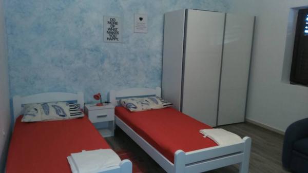 W pełni umeblowane mieszkanie na piętrze 1, 2, 3 piętrze i parterze z widokiem na morze. Położony w zachodniej, nowe, części miasta. Każdy apartament składa się z sypialni (1, 2 lub 3), pokój dzienny, kuchnia, WC z prysznicem, (1, 2 lub 3), taras, balkon. Mamy duży ogród, goście mogą korzystać z basenu i grill. Strzeżony parking. Każdy apartament wyposażony jest w prysznic-WC, ile pokoi (np. Jeśli Apaprtments z 3 sypialni z prysznicem, WC 3). Więcej można zobaczyć na stronie www. apartmentsmila. com