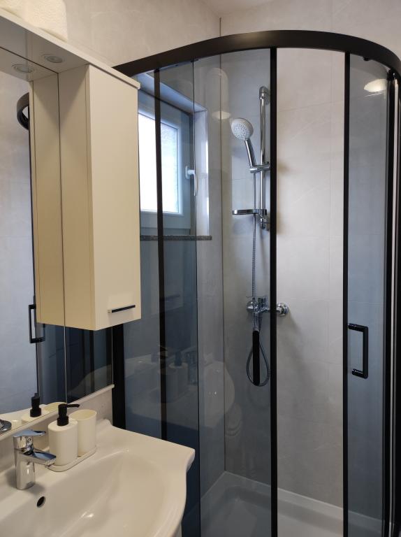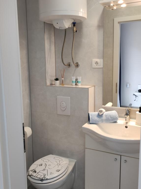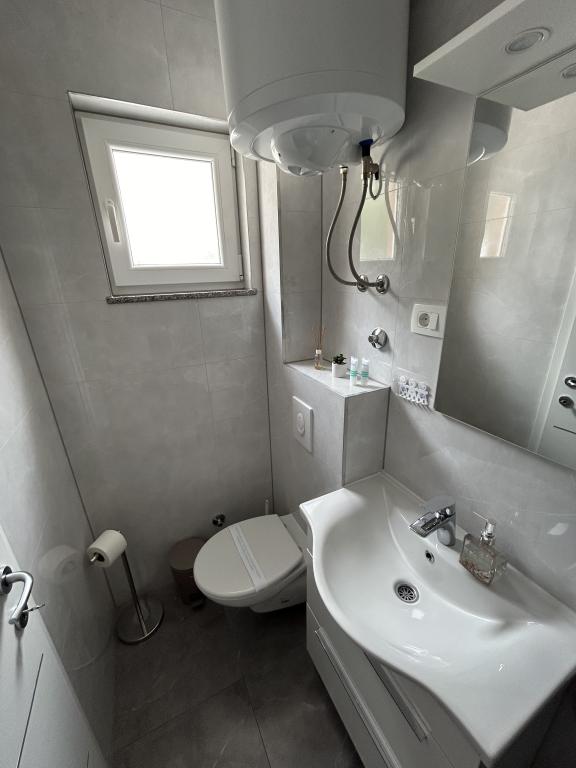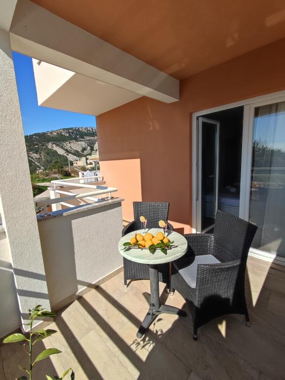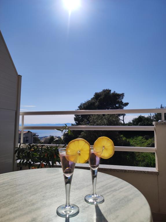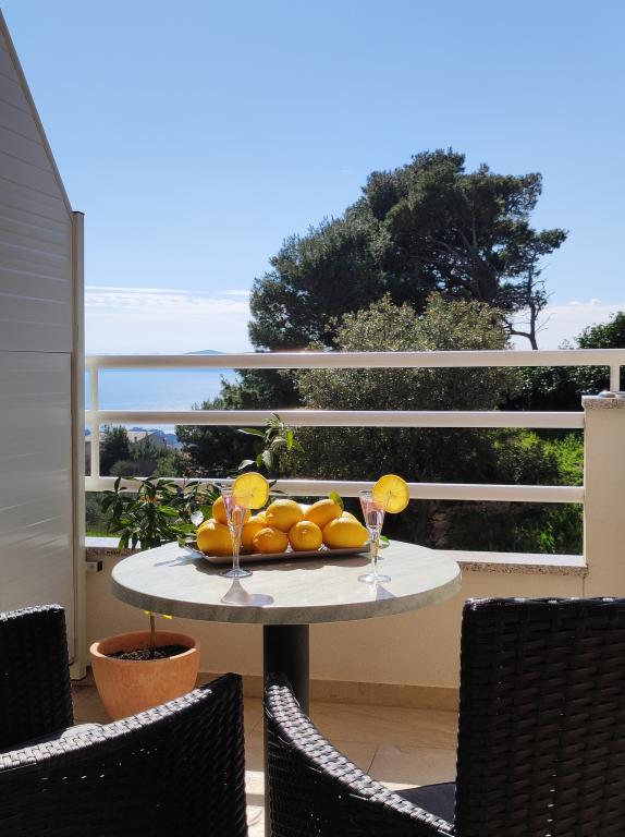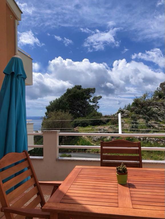Oferujemy dwa oddzielne apartamenty – zupełnie nowy apartament typu studio dla 2 osób z balkonem oraz pokój dla 2 osób z prywatną łazienką i tarasem. Oba apartamenty znajdują się na 1. piętrze domu rodzinnego w spokojnej miejscowości nad Makarską i oferują piękny widok na morze. Studio wyposażone jest w telewizor Smart TV, Wi-Fi, klimatyzację, mini kuchnię i nowoczesną łazienkę. Pokój posiada własną łazienkę i taras do relaksu. Goście mają do dyspozycji bezpłatny prywatny parking. Sklep oddalony jest o 3 minuty jazdy samochodem, plaża o 5 minut, a centrum Makarskiej o 8 minut. Gospodarze mieszkają na parterze domu i są do Państwa dyspozycji. Idealne miejsce dla par poszukujących spokoju, komfortu i prywatności – blisko morza, ale z dala od miejskiego zgiełku.