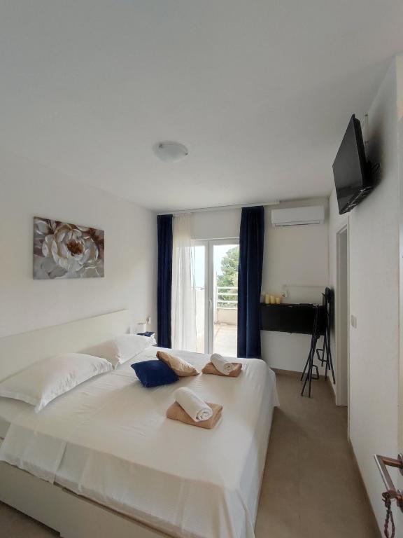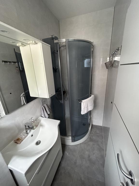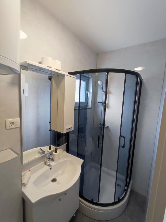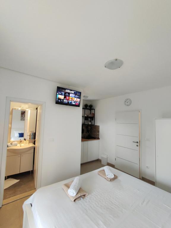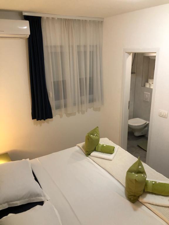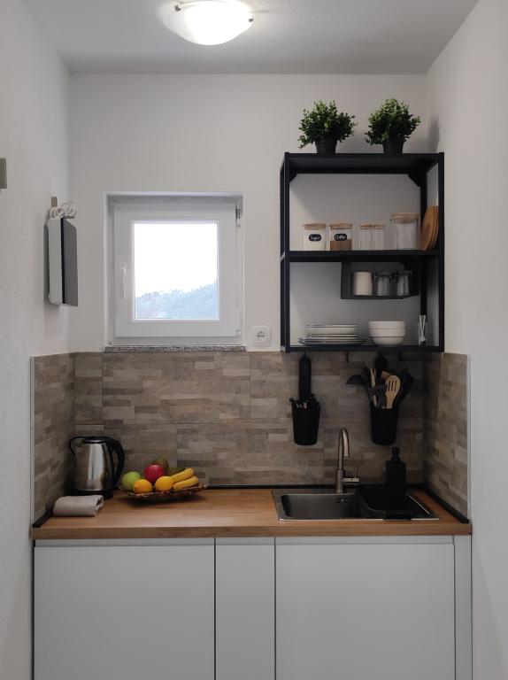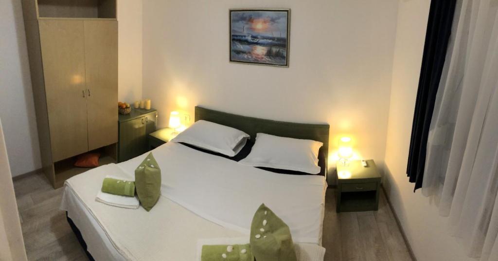 Oferujemy dwa oddzielne apartamenty – zupełnie nowy apartament typu studio dla 2 osób z balkonem oraz pokój dla 2 osób z prywatną łazienką i tarasem. Oba apartamenty znajdują się na 1. piętrze domu rodzinnego w spokojnej miejscowości nad Makarską i oferują piękny widok na morze. Studio wyposażone jest w telewizor Smart TV, Wi-Fi, klimatyzację, mini kuchnię i nowoczesną łazienkę. Pokój posiada własną łazienkę i taras do relaksu. Goście mają do dyspozycji bezpłatny prywatny parking. Sklep oddalony jest o 3 minuty jazdy samochodem, plaża o 5 minut, a centrum Makarskiej o 8 minut. Gospodarze mieszkają na parterze domu i są do Państwa dyspozycji. Idealne miejsce dla par poszukujących spokoju, komfortu i prywatności – blisko morza, ale z dala od miejskiego zgiełku.