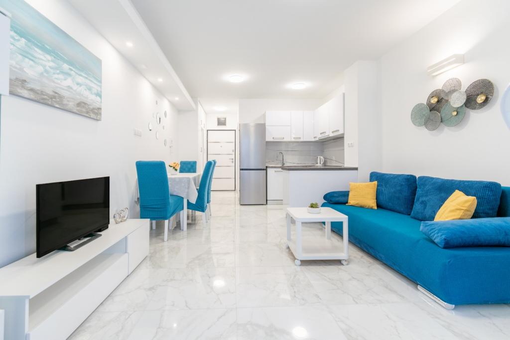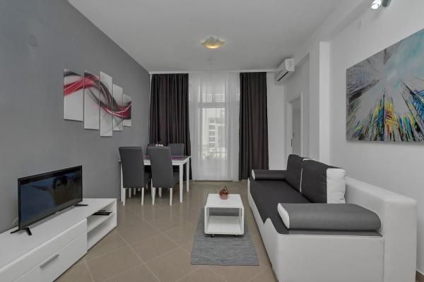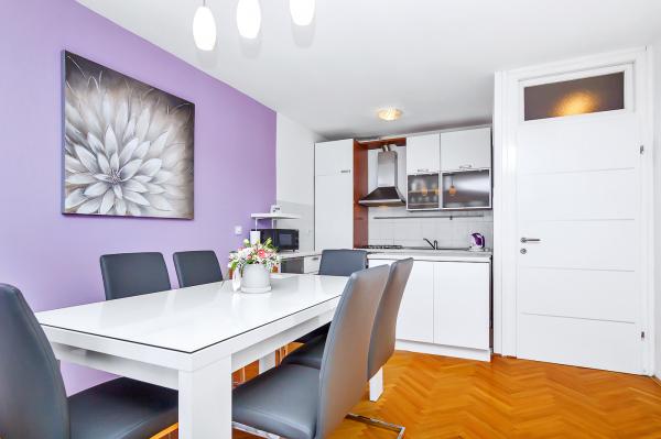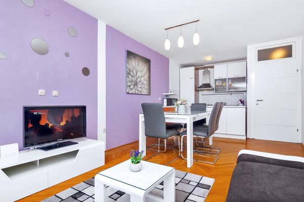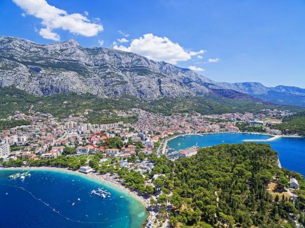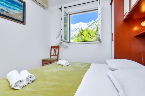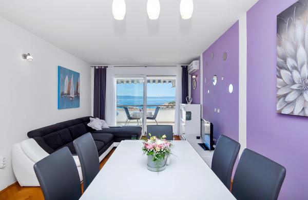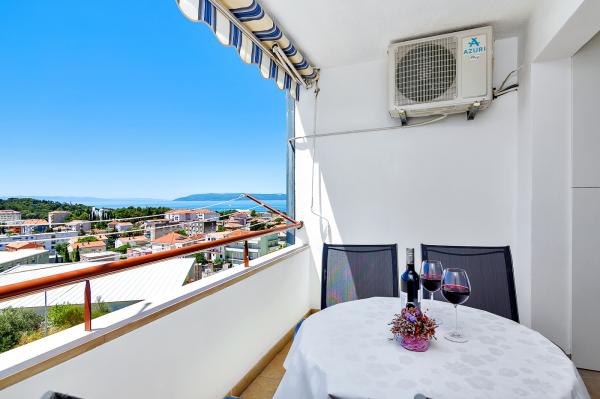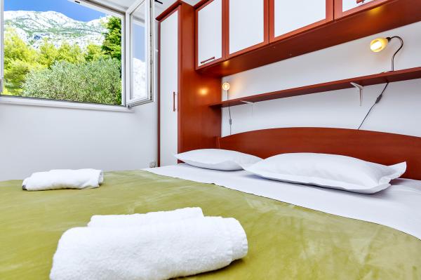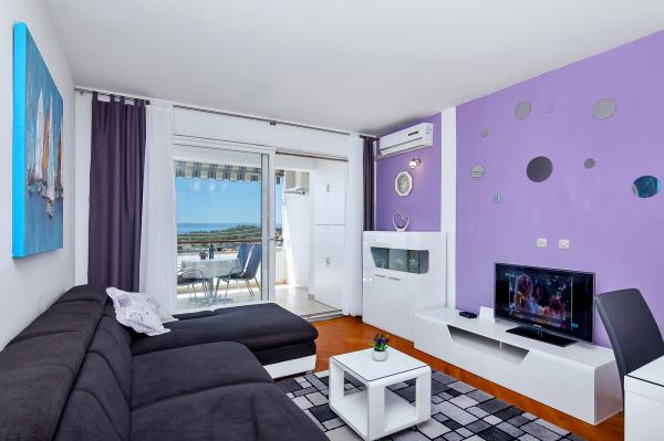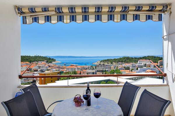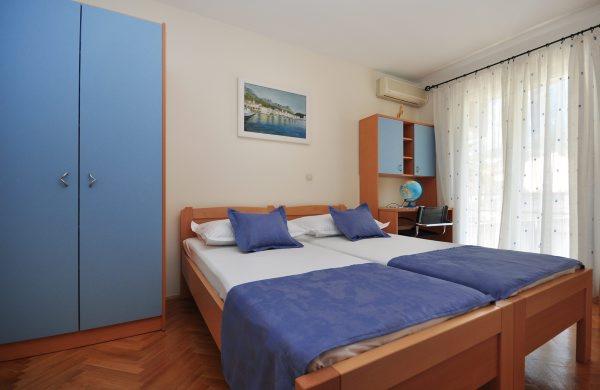 Chcesz to wygodny apartament z widokiem na morze? To jest dokładnie to, co możemy Ci zaoferować. Komfortowy, klimatyzowany apartament składa się z dwóch sypialni (jedna z balkonem), łazienka, w pełni wyposażona kuchnia i salon z tarasem z pięknym widokiem na morze i wyspy Brac i Hvar. Satellite TV, bezpłatny dostęp do Internetu. Mieszkanie znajduje się blisko centrum miasta, zaledwie 300 m od plaży.