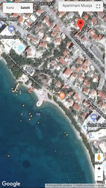 Apartamenty Musija składają się z 5 jednostek mieszkalnych w tym samym budynku ze strzeżonym parkingiem. W pełni i nowocześnie wyposażone apartamenty położone w spokojnej części Makarskiej, 5 minut spacerem od plaży i 10 - 15 minut spacerem od centrum miasta. W bezpośrednim sąsiedztwie znajdują się sklepy, restauracje i inne dodatkowe obiekty o charakterze rozrywkowym i rekreacyjnym gwarantujące niezapomniane wakacje.