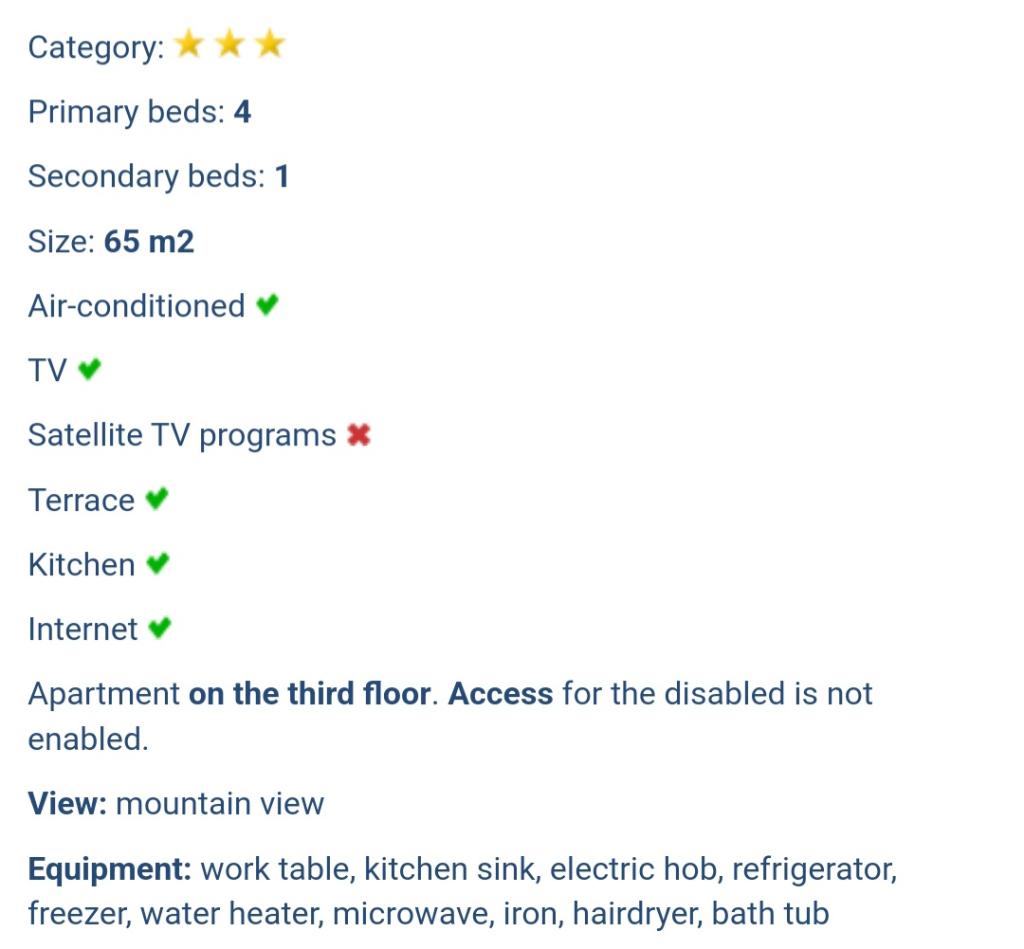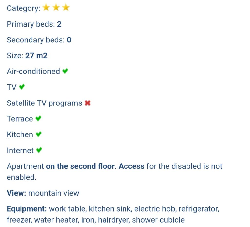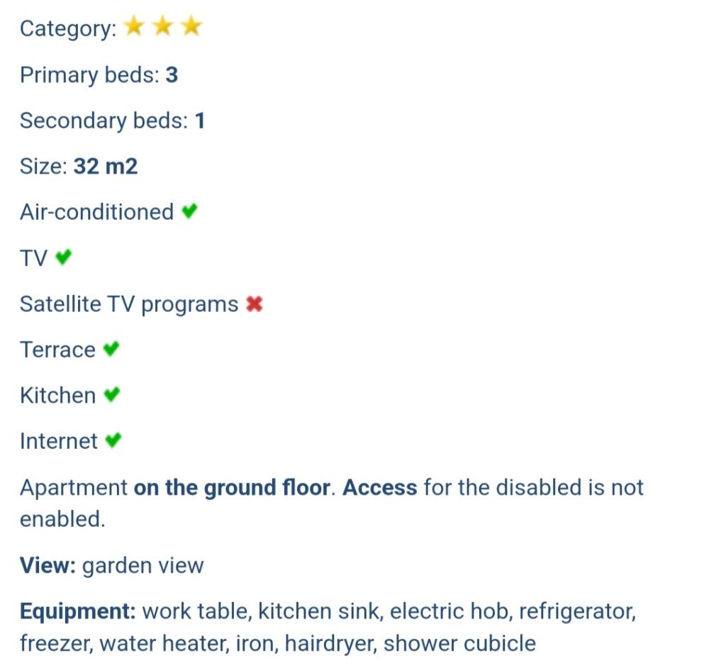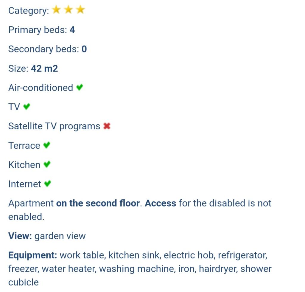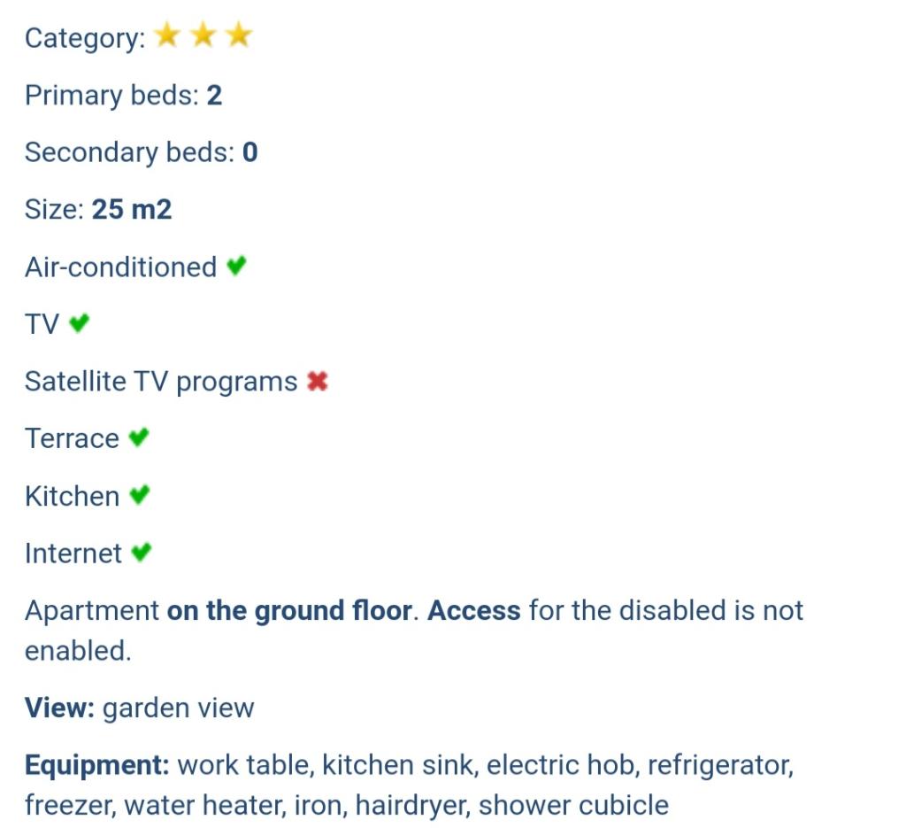 Mieszkaliśmy w apartamencie razem z dziećmi. Jest wyjątkowo czysto, gospodynie są niezwykle gościnne i profesjonalne. Apartamenty posiadają własny bezpłatny parking, w pobliżu stoisko z owocami, kilka sklepów, apteka, piekarnia, restauracja. 5 minut łatwego spaceru do plaży miejskiej z kilkoma schodami i minimalnym podjazdem, jeśli pójdziesz objazdem. Mieszkanie wygląda jak na zdjęciach. Ponieważ jest bardzo blisko głównej drogi, jeśli nie zamkniesz okien, możesz usłyszeć samochody. Na koniec otrzymaliśmy także brandy w prezencie. Wszystkie rekomendacje!