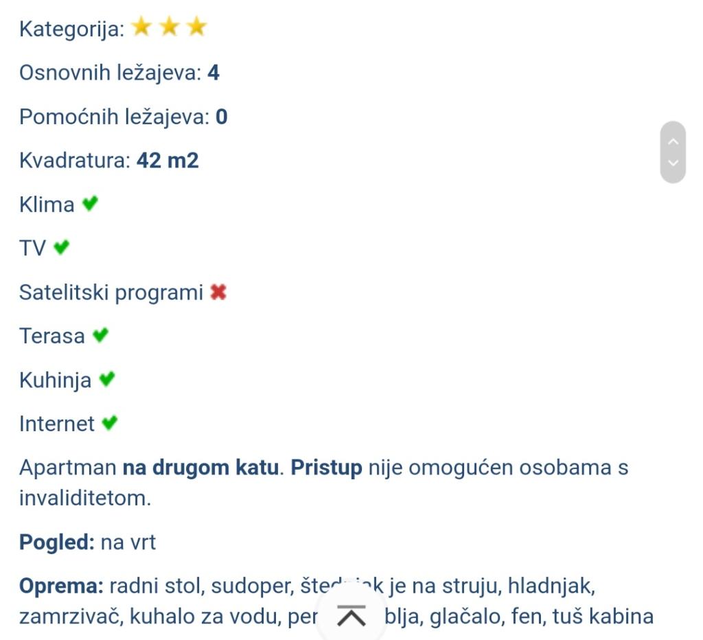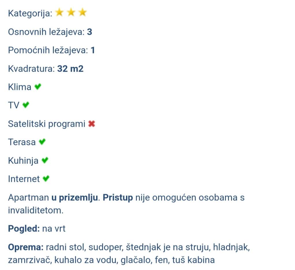 Wszystkie pochwały dla naszej uroczej gospodyni, są bardzo mili i zawsze do usług. Jeśli chodzi o mieszkanie, wszystko jest schludne, czyste i urządzone, gospodyni codziennie rano sprząta, myje podwórko i schody, wszystko jest na najwyższym poziomie. Byliśmy tam w zeszłym roku, jesteśmy ponownie w tym roku i mamy nadzieję, że także w przyszłym. Polecam każdemu kto pragnie wypoczynku i bardzo miłej komunikacji z gospodynią czyli naszą Musiją.