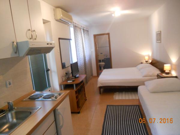 Wspaniałe zakwaterowanie w samym sercu Makarskiej! Studio jest przestronne i dobrze wyposażone i mogą pomieścić 3 osoby dorosłe w nim. Gospodarze są przyjaźni i uprzejmi i doskonałe do gości i wypełnianiu ich zobowiązań na ładny, czysty, bezproblemowe i przyjemne wakacje :) Nawet jej się przy głównej ulicy miasta, otoczenia domu (palmy itp.) tłumią hałasy z ulicy. Plaża, restauracje i supermarket znajdują się w mniej niż 5 minut spacerem od apartamentów i jest mniej niż 10 minut od centrum miasta i port miasto / marina. Pragnę wyrazić moją wdzięczność wobec gospodarzy do pomieszczenia i udostępniania ich do nieba z nami tego lata. Mam nadzieję, że będzie kolejne wakacje tam ponownie :)