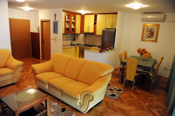 Stylowy i luksusowy apartament dupleks, nowoczesny i dobrze wyposażony ekskluzywnych interijerom.S balkonów i sypialni roztaczają się wspaniałe widoki na morze, miasta Makarska i sąsiednie wyspy Brac i Hvar. Położony w centrum Makarskiej, zaledwie 5 minut spacerem od nabrzeża, Piaszczysta plaża, liczne restauracje, bary i inne formy rozrywki.