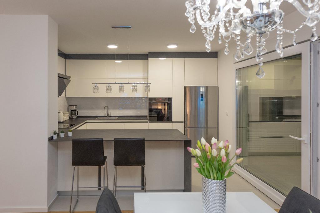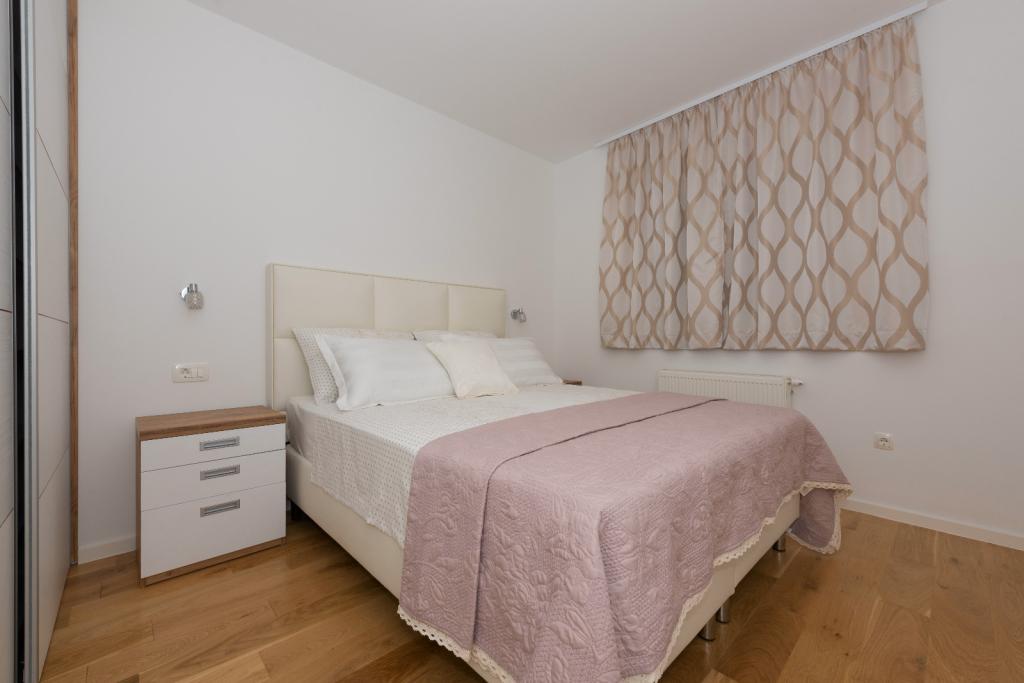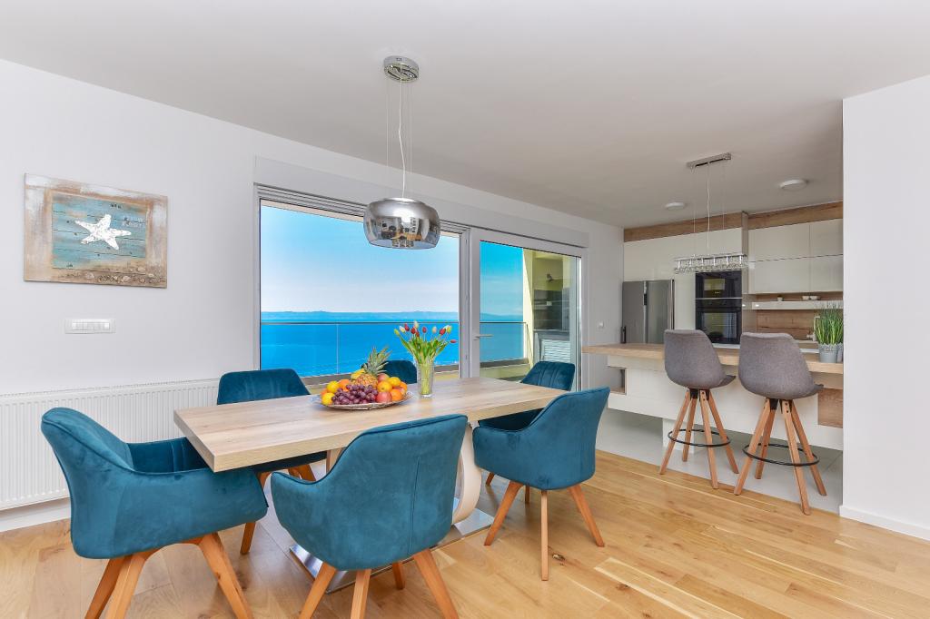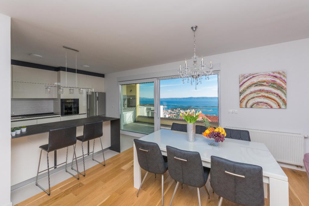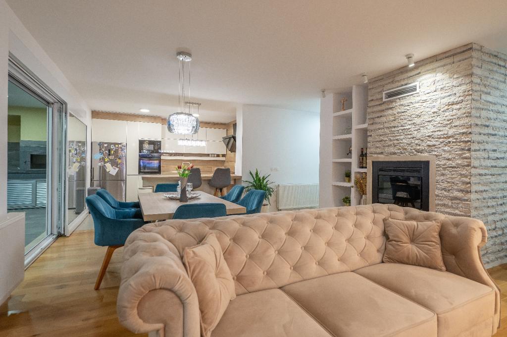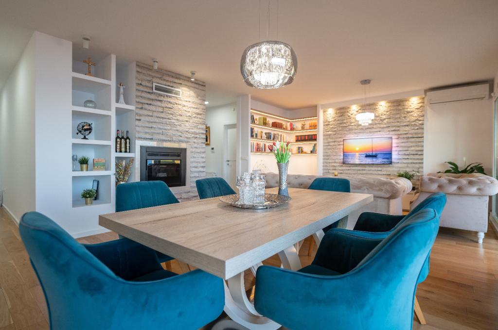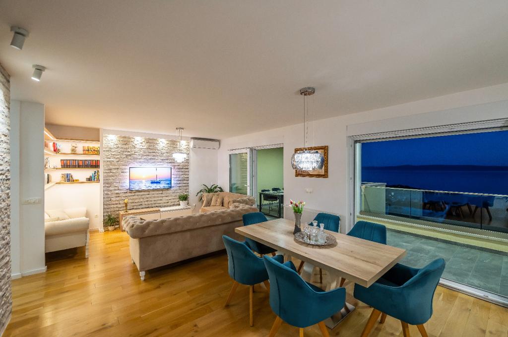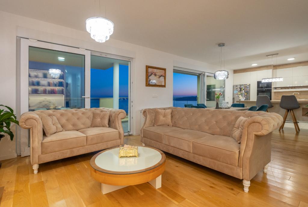 Penthouse Jure i Penthouse Nikola w Makarskiej to luksusowe i przestronne apartamenty o powierzchni 135 m², idealne na komfortowy i relaksujący pobyt. Każdy apartament składa się z trzech elegancko urządzonych sypialni, dwóch nowocześnie wyposażonych łazienek, garażu oraz dużego tarasu z przepięknym widokiem na morze i miasto, idealnego na relaks i odpoczynek. Położone w spokojnej okolicy, 2 km od centrum miasta i 1 km od morza, oferują idealne połączenie prywatności i bliskości wszelkich udogodnień.