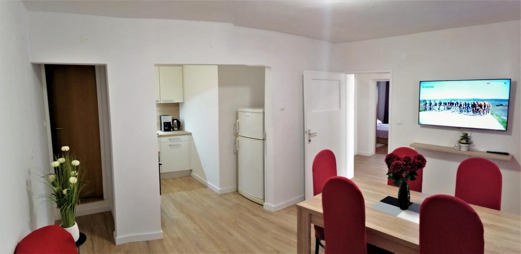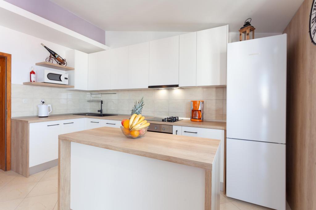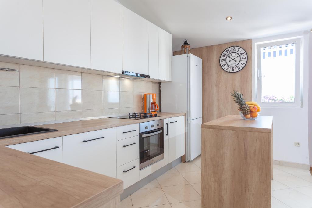 Wszystko jest absolutnie super, bardzo miłe podejście gospodarzy, ich chęć, uwaga i życzliwość są niesamowite, pomoc u lekarza, termometr, leki zostaną zorganizowane, pomogą. Wszystko czyste, doskonale przygotowane dla gości. Kto chce gotować, kuchnia zawiera wszystko, dwa sklepy w odległości 40 i 50 m, piekarnia 60 m. To mieszkanie jest bardzo dobrze położone, z widokiem na ulicę, więc jest cicho do spania. Parking tuż przed apartamentem, jeśli masz dzieci, nie musisz nigdzie przechodzić przez ulicę, wystarczy bezpiecznie wsiąść do samochodu i udać się nad wodę.