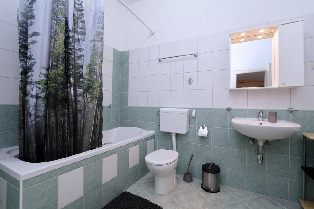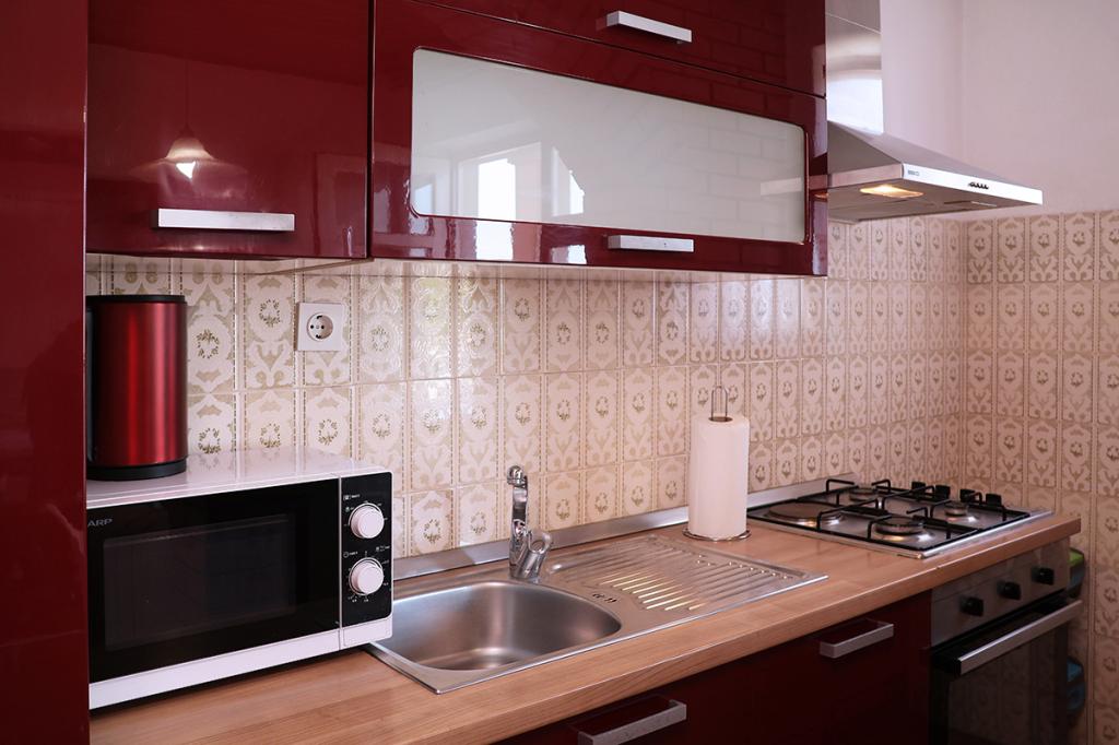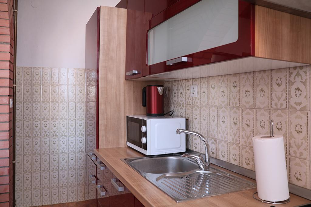 Zakwaterowanie było bardzo wygodne dla naszej rodziny (2 dorosłych i 16-letniego syna), wystarczająco duże i dobrze wyposażone. Kuchnia jest nowoczesna i zawiera wszystko, czego potrzebujesz (kuchenka, mikrofalówka, czajnik, zlew i naczynia), służy bezpośrednio jako salon z dużym pokojem i jednocześnie miejscem do spania dla naszych dorosłych. Sypialnia udostępniana jest jako osobne pomieszczenie - ergonomiczne i kompaktowe: z podwójnym łóżkiem i szafą. Sypialnia znajduje się w zacienionej części mieszkania i oferuje chłodną przestrzeń. Łazienka jest ogromna i ma dużą wannę z prysznicem. Jest tam w pełni funkcjonalna pralka, a nawet suszarka do włosów. Niestety zauważyliśmy tylko jedną wadę: klimatyzacja nie działa prawidłowo. Znajduje się w korytarzu i powinno chłodzić całe mieszkanie, wystarczy przewietrzyć. Mieszkanie ma własny taras, który jest piękny. W kompleksie mieszkalnym na wyższym poziomie znajduje się duży taras dla wszystkich gości, z którego roztacza się wspaniały widok na morze, stare miasto i miasto jako całość. Po prostu bardzo przydatny do podziwiania zachodów słońca. Jesteśmy na wakacjach w Makarskiej po raz piąty i dlatego możemy porównać z poprzednimi kwaterami: to był TOP apartament z bardzo przyjaznymi gospodarzami i piękną lokalizacją w centrum starego miasta.