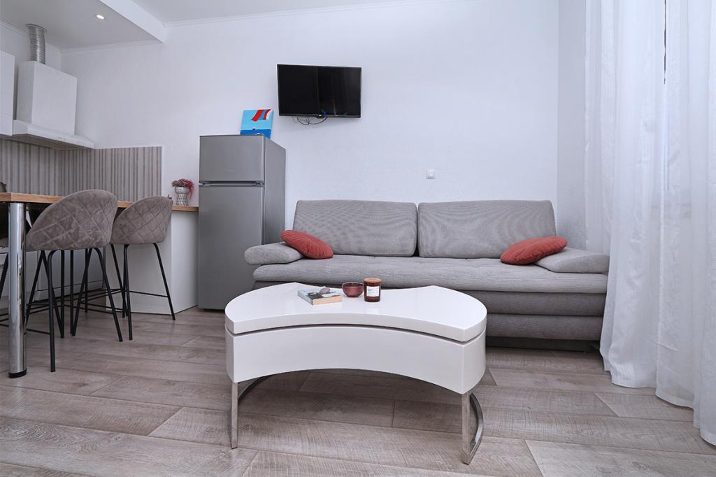 Fantastyczne apartamenty, dwie duże łazienki i trzy sypialnie z piękny prywatny taras z widokiem na dobrze utrzymany ogród i grill. Incredible gościnni gospodarze - właściciele byli bardzo przyjazny, ciepły i miły i zawsze witał nas rano, aby sprawdzić, czy wszystko było w porządku. Mieliśmy szczęście, aby spędzić noc z właścicielem degustacja lokalnego grappa słuchając o historii i Chorwacji pierwszej ręki. Niesamowita lokalizacja, 10 min spacerem do plaży, 5 min do głównego centrum z supermarketów i wiele bankomatów i 5 minut spacerem do dworca autobusowego, jeśli przyjeżdżasz z Dubrownika i Splitu. Na górze świetna obsługa i lokalizacji, nie było niesamowite dachu balkon taras z zapierającym dech w piersiach widokiem na Makarską i wyspy, chciałbym powiedzieć jedną z najlepszych w mieście.