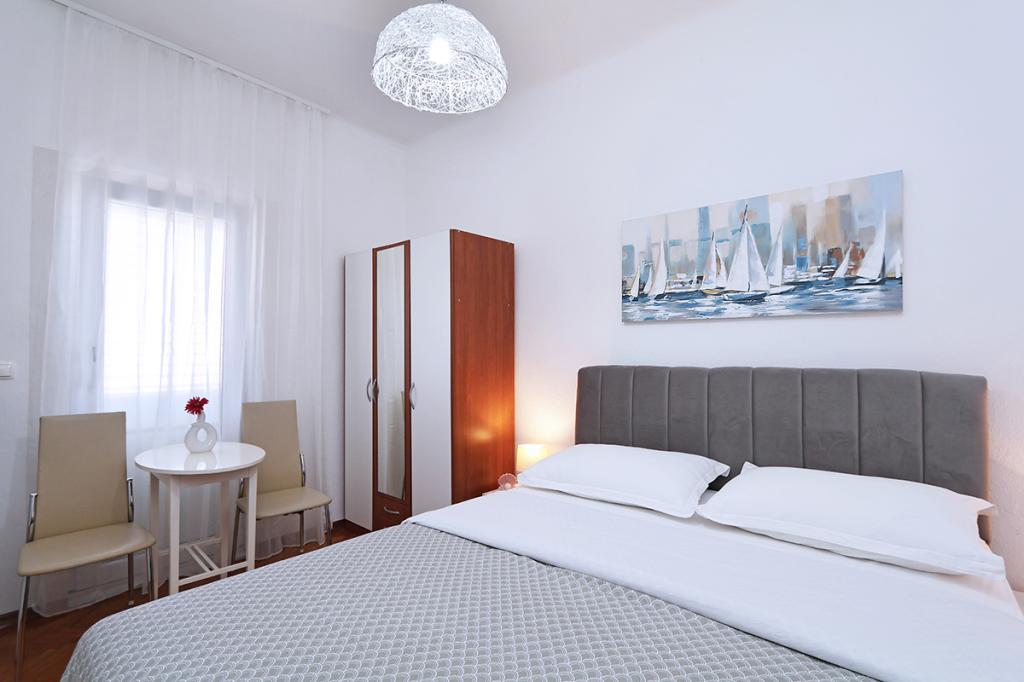 Apartamenty i pokoje Villa Flamingo położone są w centrum miasta, z dala od głównej drogi, w cichym otoczeniu z dużym ogrodem i parkingiem. Wszystko zlokalizowane jest w centrum miasta, apartamenty znajdują się 100 metrów od głównego placu, 300 metrów od nabrzeża, 500 metrów od plaży. Apartamenty znajdują się z dala od głównej drogi, co gwarantuje spokojny i cichy wypoczynek. Przed domem, w ogrodzie, znajduje się duży kominek, gdzie można przygotować dania z grilla i zjeść kolację w pięknym otoczeniu naszego ogrodu. Z balkonu roztacza się widok na morze i port miejski, a także wyspy Brač i Hvar. Wszystkie apartamenty są klimatyzowane, wyposażone w telewizję satelitarną i internet WiFi. Po uzgodnieniu z gośćmi organizujemy transport z lotniska do apartamentu. W apartamentach dostępny jest bezprzewodowy internet. Na szczycie domu znajduje się duży taras z przepięknym widokiem na morze i miasto, dostępny dla wszystkich gości. Istnieje możliwość zorganizowania śniadania, obiadu, kolacji w pobliskiej restauracji.