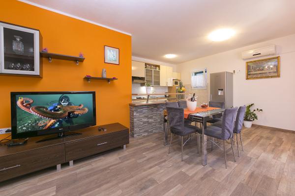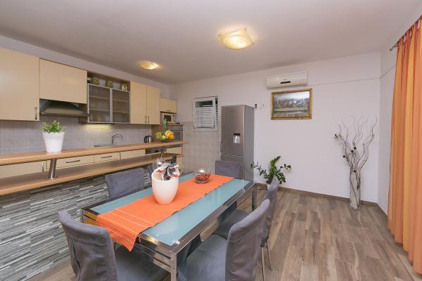 Zapraszamy do naszego mieszkania Roso, który składa się z trzech sypialni, dwóch łazienek, pokój dzienny, kuchnia i jadalnia. Mieszkanie nadaje się do 2 lub 3 rodzin lub dla 6 osób dorosłych i 2 dzieci lub dla 8 osób w dowolnej kombinacji. Jest on przeznaczony do spotkań towarzyskich, zwłaszcza na tarasie, gdzie można cieszyć się słońcem, świeże powietrze, picia i śmiech. Kto przychodzi tu raz, zawsze wraca! Apartament Rosa znajduje się w stosunkowo nowej dziedzinie, spokojnej okolicy, znajduje się w doskonałej lokalizacji, na tyle daleko (nie słychać ruchu) i wystarczająco blisko do głównej drogi, z której można przejść we wszystkich kierunkach. Spacer plaża przyjść przez 15 minut przez ciekawych ulic dalej poznają nasze miasto, można również przejść na dół i samochodem. W pobliżu znajduje się sklep, w którym można pokryć niezbędne jedzenia i picia. Lubimy pracować z ludźmi. Makarska jest miastem turystycznym, a wszyscy żyją z turystyki, zgodnie z tym, co będziemy starali się zapewnić sobie przerwę w naszym domu w najlepszy możliwy sposób i zapewnić wszystkim informować